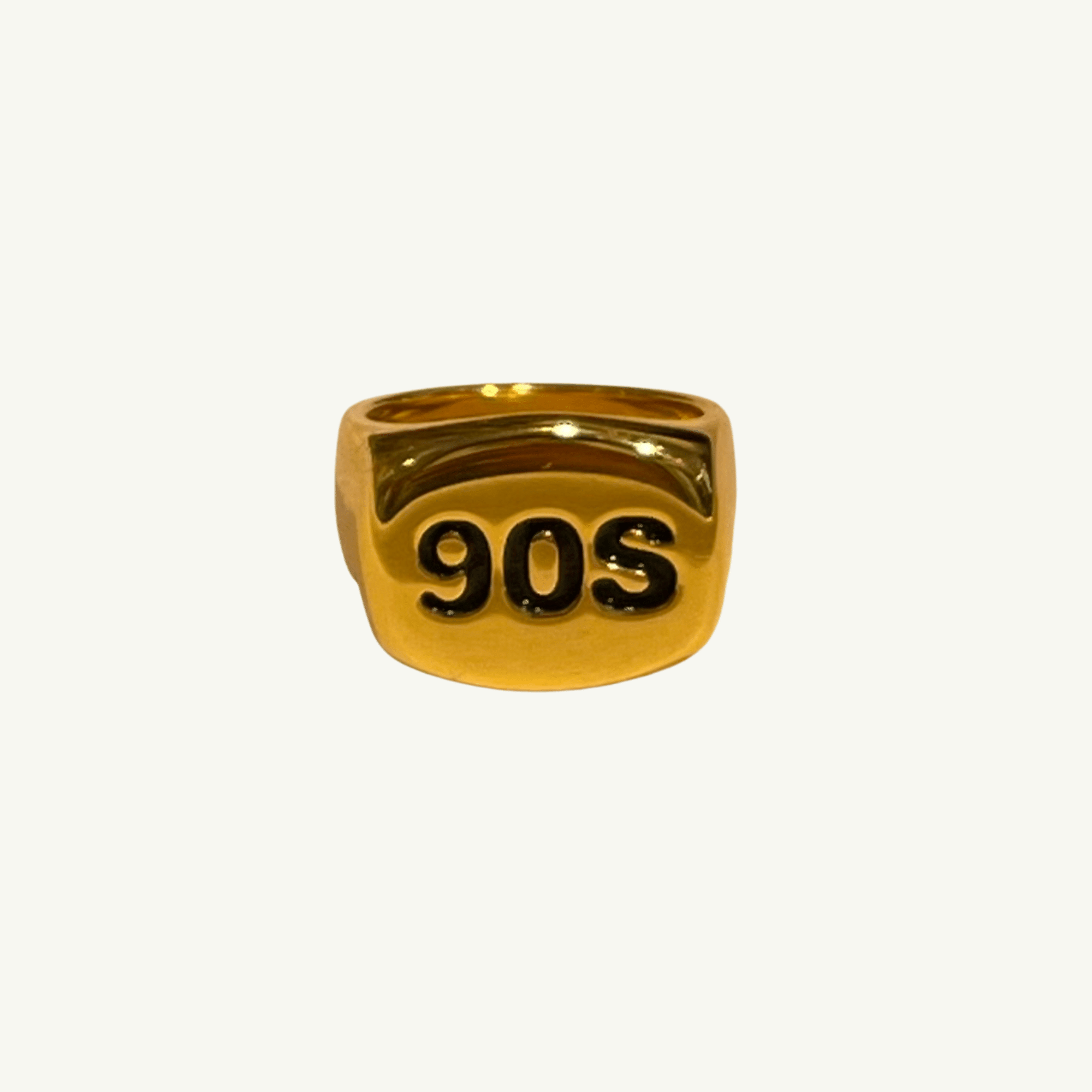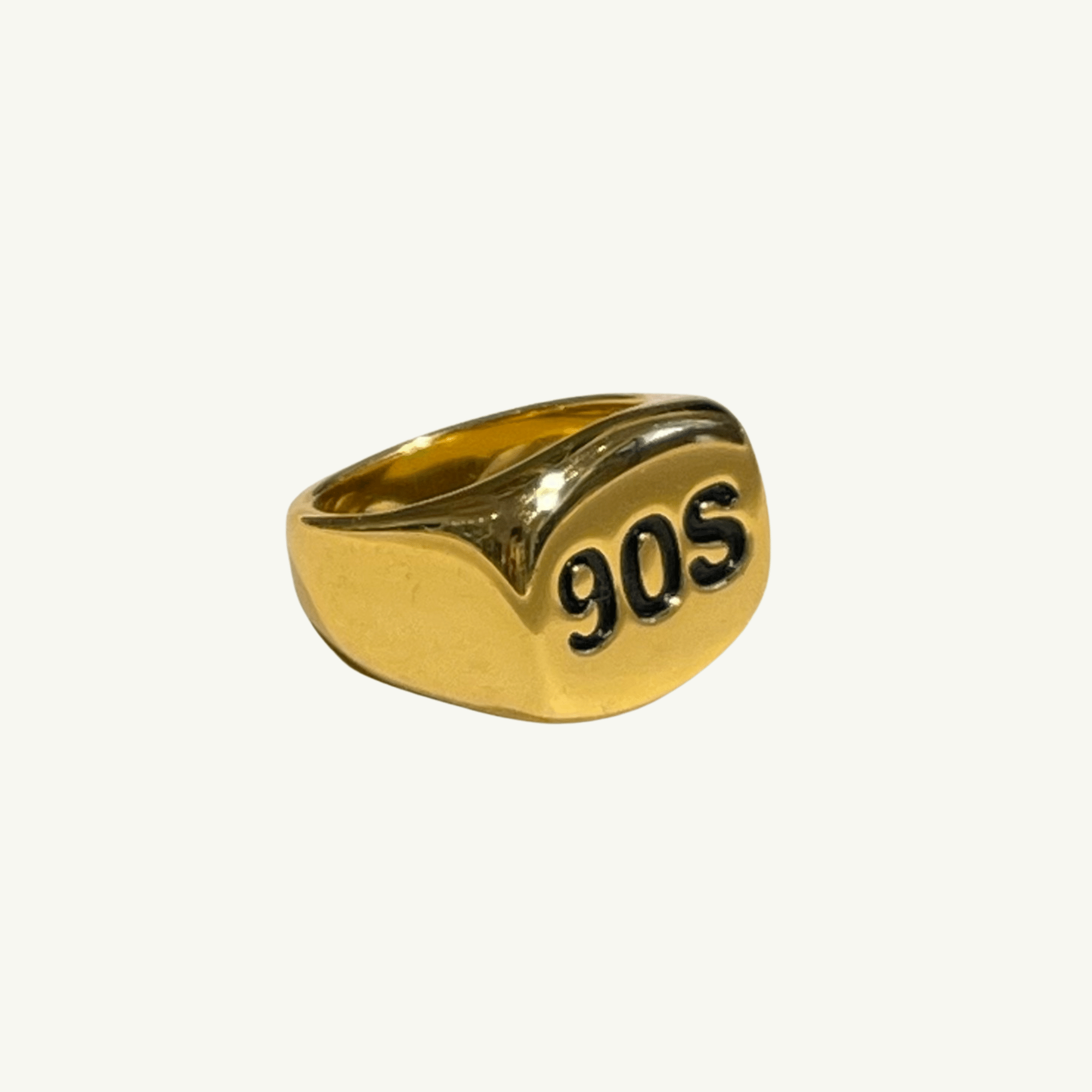 Ontdek de tijdloze charme van de AMO | The 90's ring van A Modern Object. Deze goudkleurige ring is perfect als een opvallende statement ring of als onderdeel van een stijlvolle set. De ring is voorzien van een kenmerkend 90s-embleem, wat een nostalgische touch toevoegt aan elke outfit.