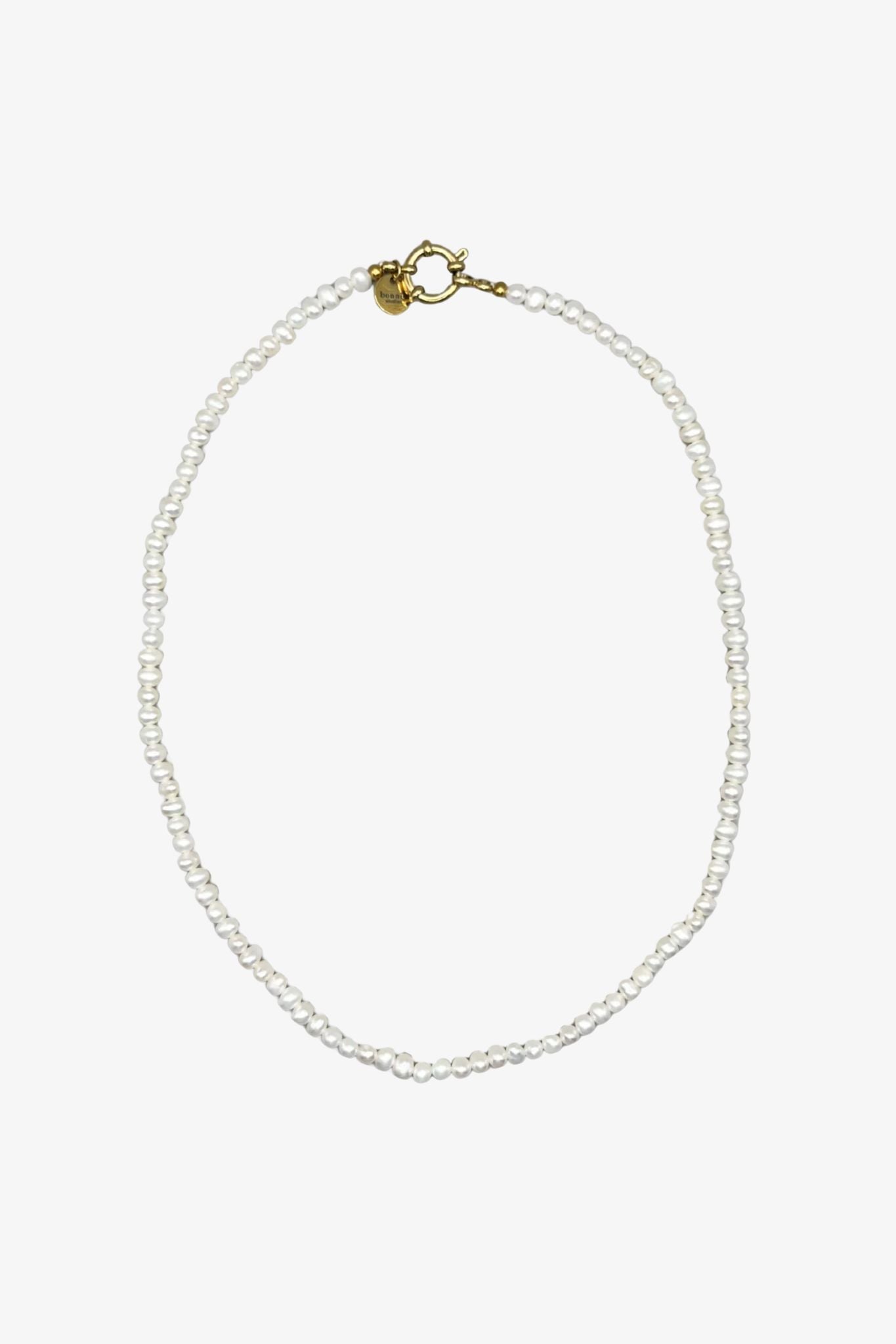 Timeless and effortlessly elegant, the Fred Necklace from Bonnie Studios is crafted from delicate 4 mm freshwater pearls, offering a refined and minimalist take on a classic jewelry staple. Each necklace is unique, with subtle variations that highlight the natural beauty and individuality of the pearls.