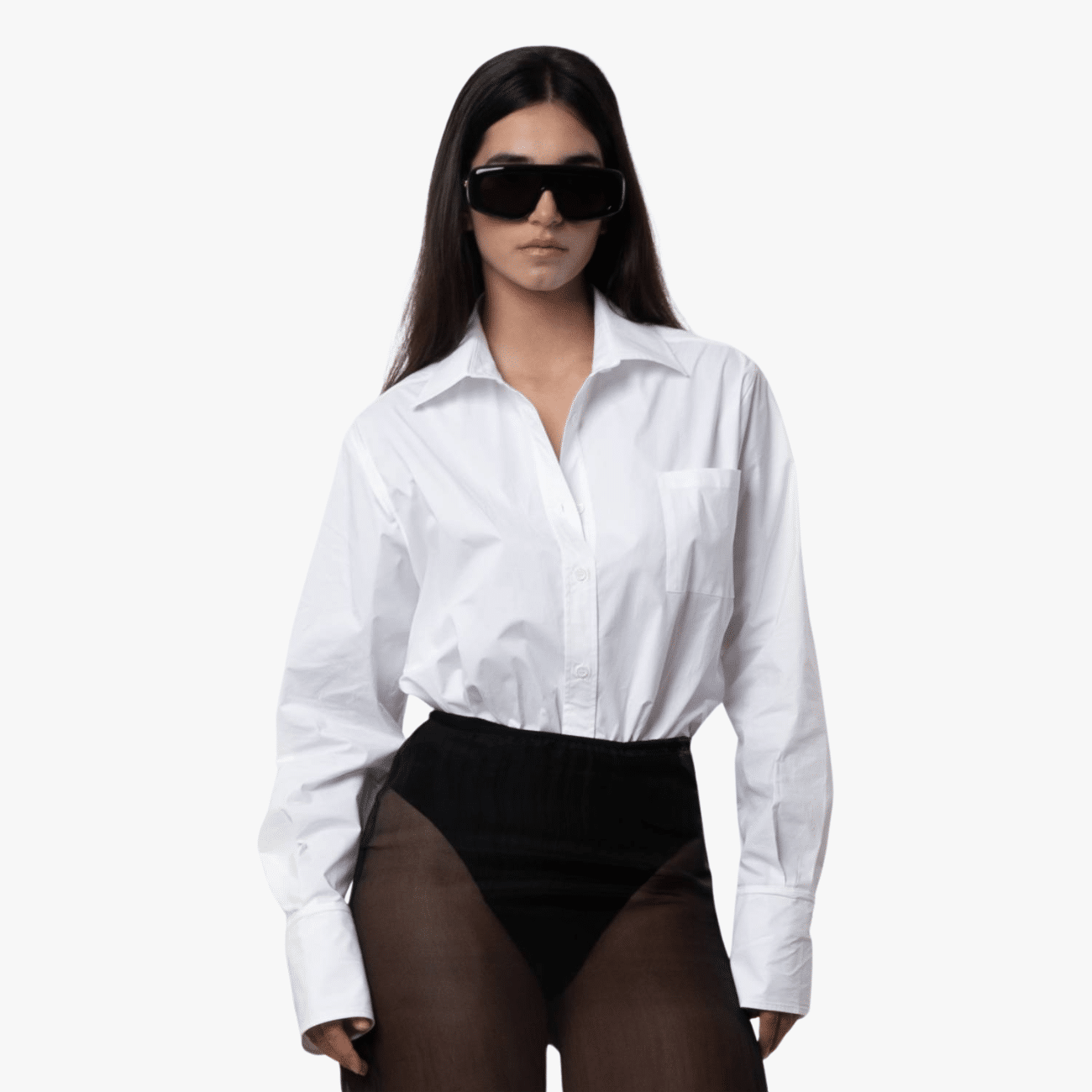 De body blouse is vervaardigd in Portugal en biedt een ongeëvenaarde kwaliteit. Het heeft een verstelbare riem, waardoor hij gemakkelijk aangepast kan worden aan jouw lichaam voor een perfecte pasvorm. Het strakke witte design maakt het eenvoudig te combineren met diverse outfits, perfect voor zowel casual als zakelijke uitstraling.