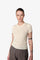 Designed with a relaxed fit, short sleeves, and a classic round neckline, this tee works effortlessly as a standalone piece or layered under jackets, blazers, or dresses for a versatile, modern look.