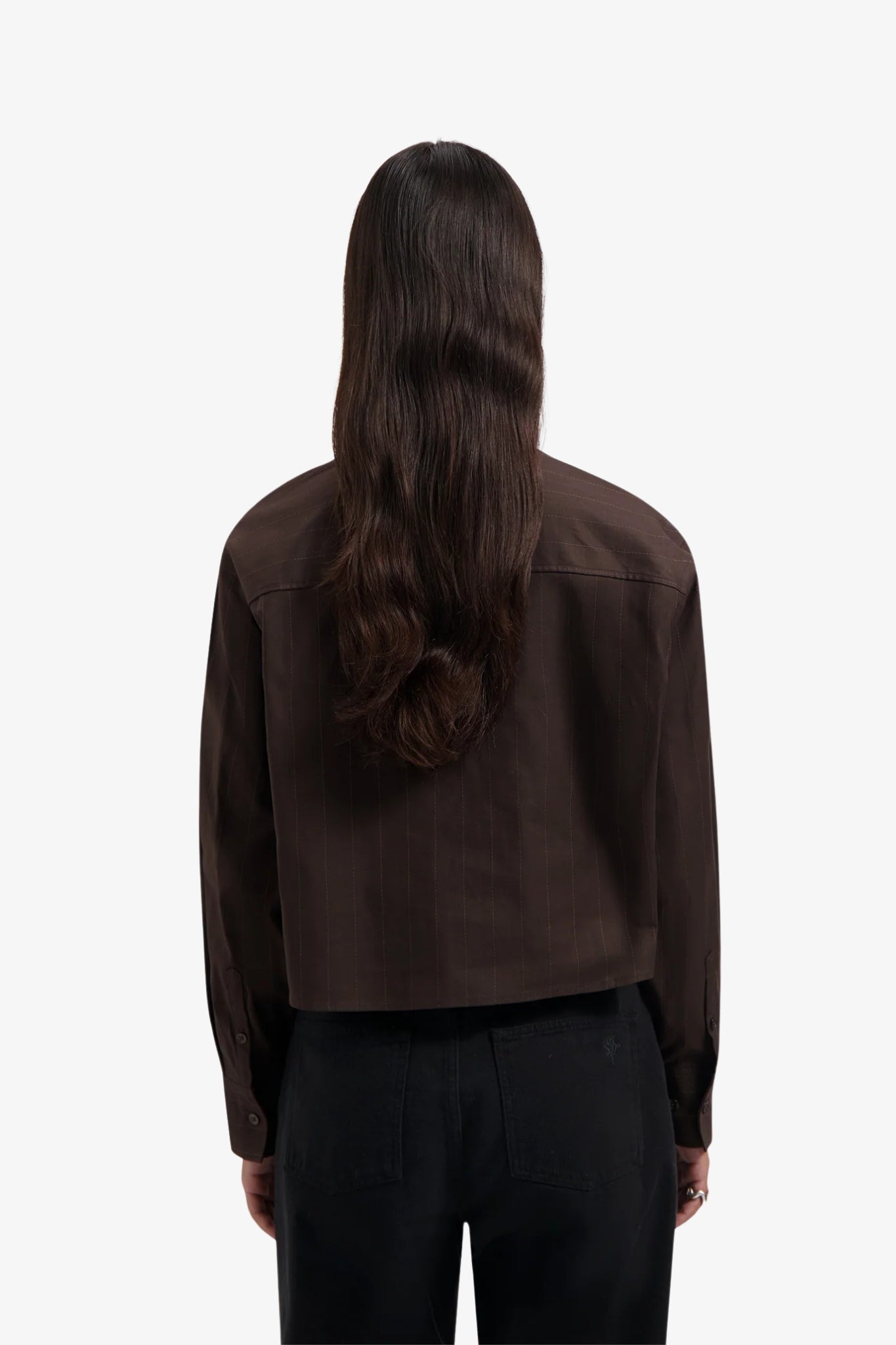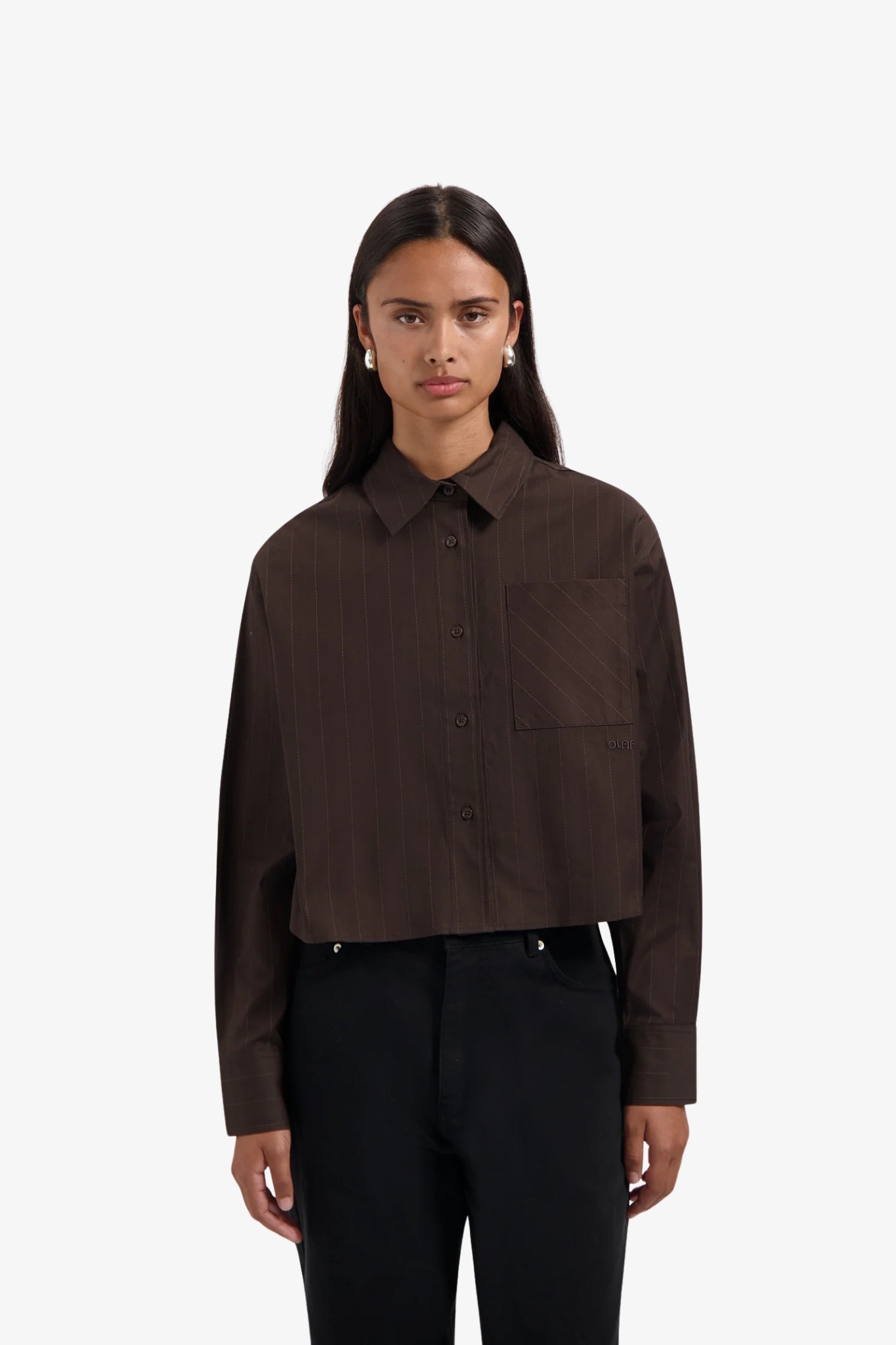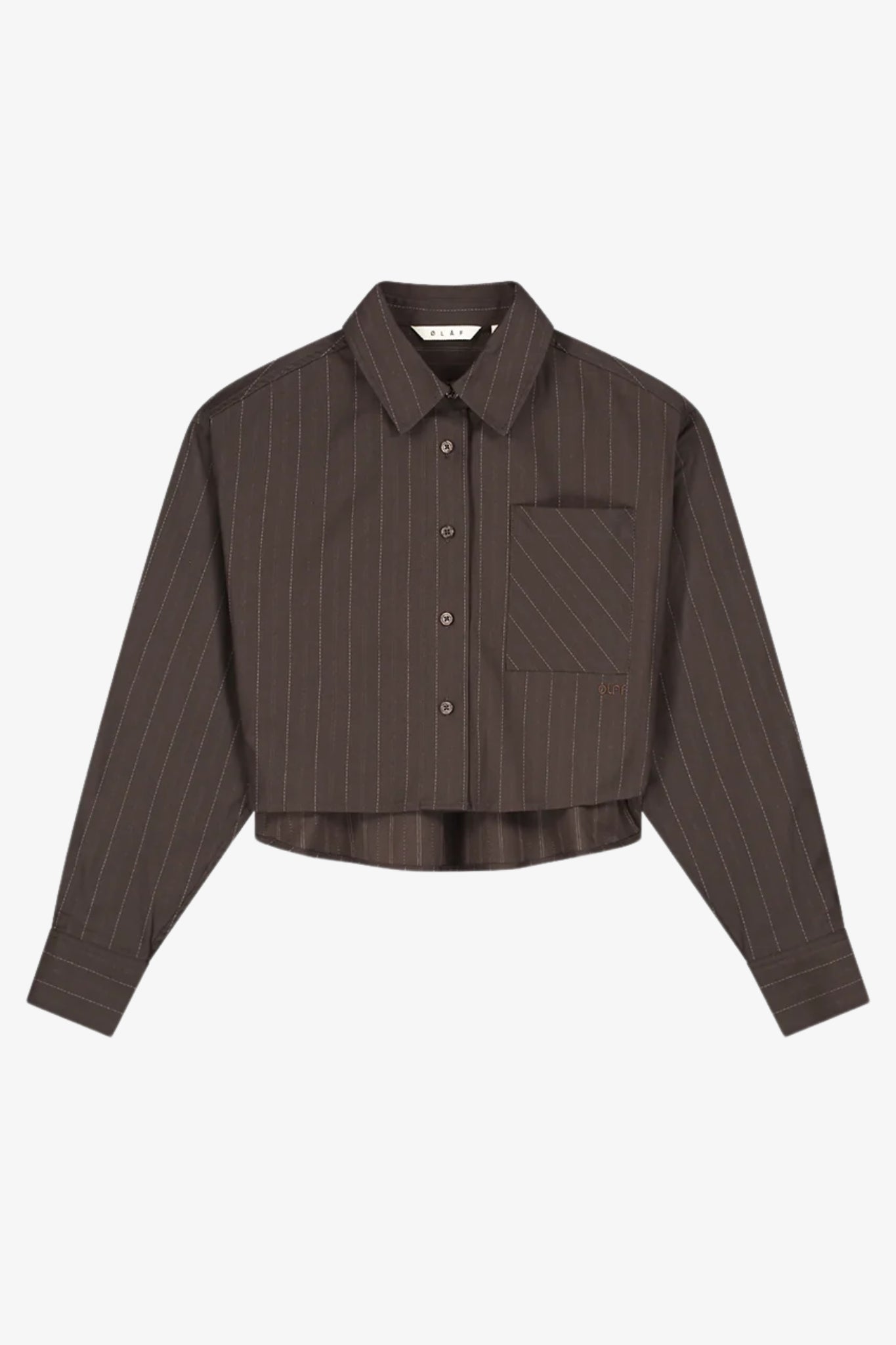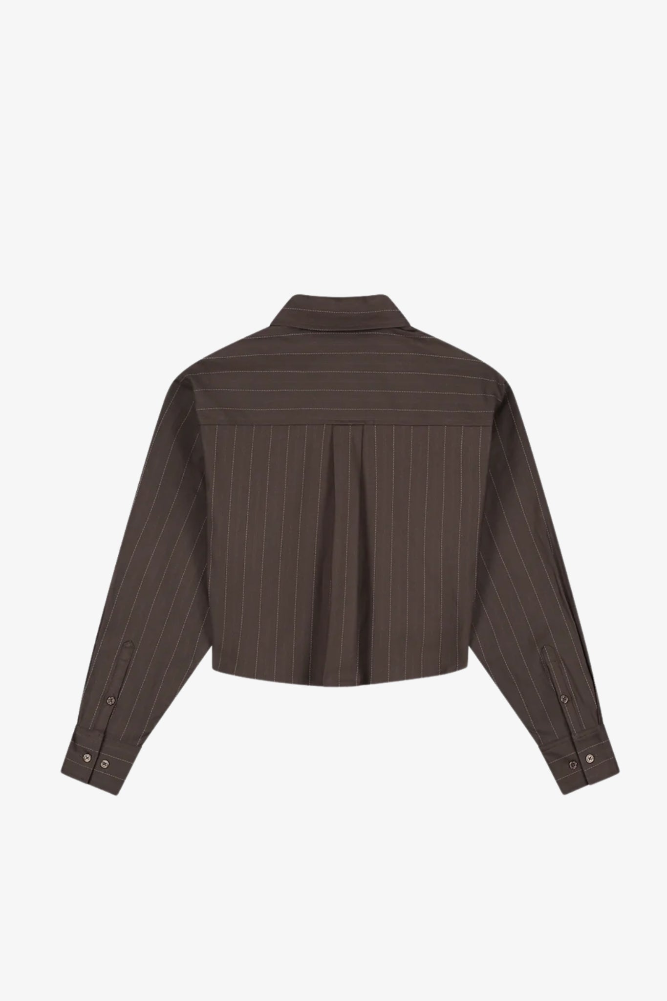 Elevate your wardrobe with the Pinstripe Cropped Shirt, a refined blend of classic tailoring and modern silhouette. Crafted with subtle pinstripes, this shirt offers a polished yet relaxed fit that complements any ensemble. Its cropped length adds a contemporary edge while maintaining an elegant, sophisticated appeal perfect for both professional settings and stylish casual wear.