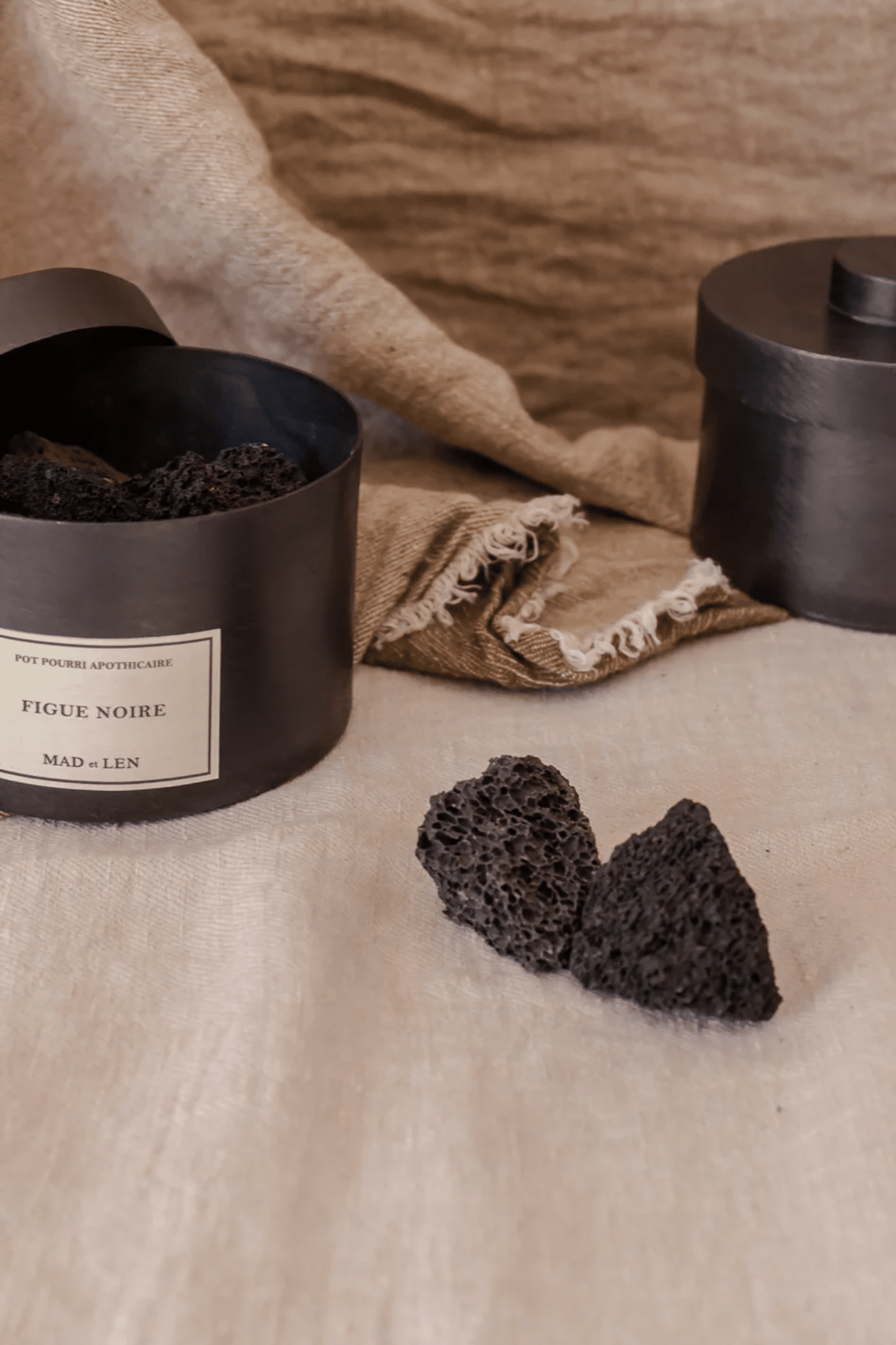 Ontdek de elegante Pot Pourri Apothicaire Lava Rock collectie van Mad et Len, een perfecte mix van stijl en geur voor uw huis. De collectie, geschikt voor zowel home als garden, biedt een unieke geurbeleving dankzij de kenmerkende Figue Noire-geur. De potten, vervaardigd uit stevig ijzer, zijn verkrijgbaar in drie formaten om aan uw behoeften te voldoen: Mini (8x5cm, inclusief 5ml geuroplossing), Small (12x10cm, inclusief 15ml geuroplossing) en Large (16x10cm, inclusief 15ml geuroplossing).