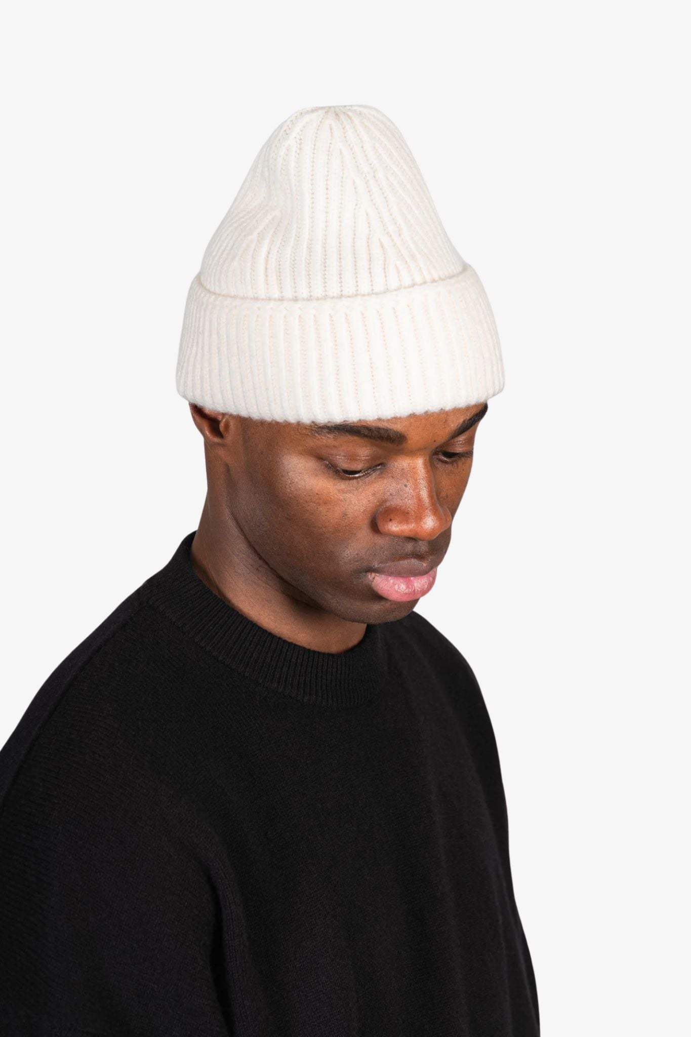 The cashmere blend beanie is knitted in a 5 gauge full cardigan rib stitch. Fully fashioned knitted with 6 ply (70% Merino Wool/ 30% Cashmere) to achieve the softness and chunkier look we wanted. It comes with a 8cm fold, where you can adjust the fold to however you like to wear your beanie. A timeless accessory that will get you through cold days in the city and a quality piece to cherish for years to come.