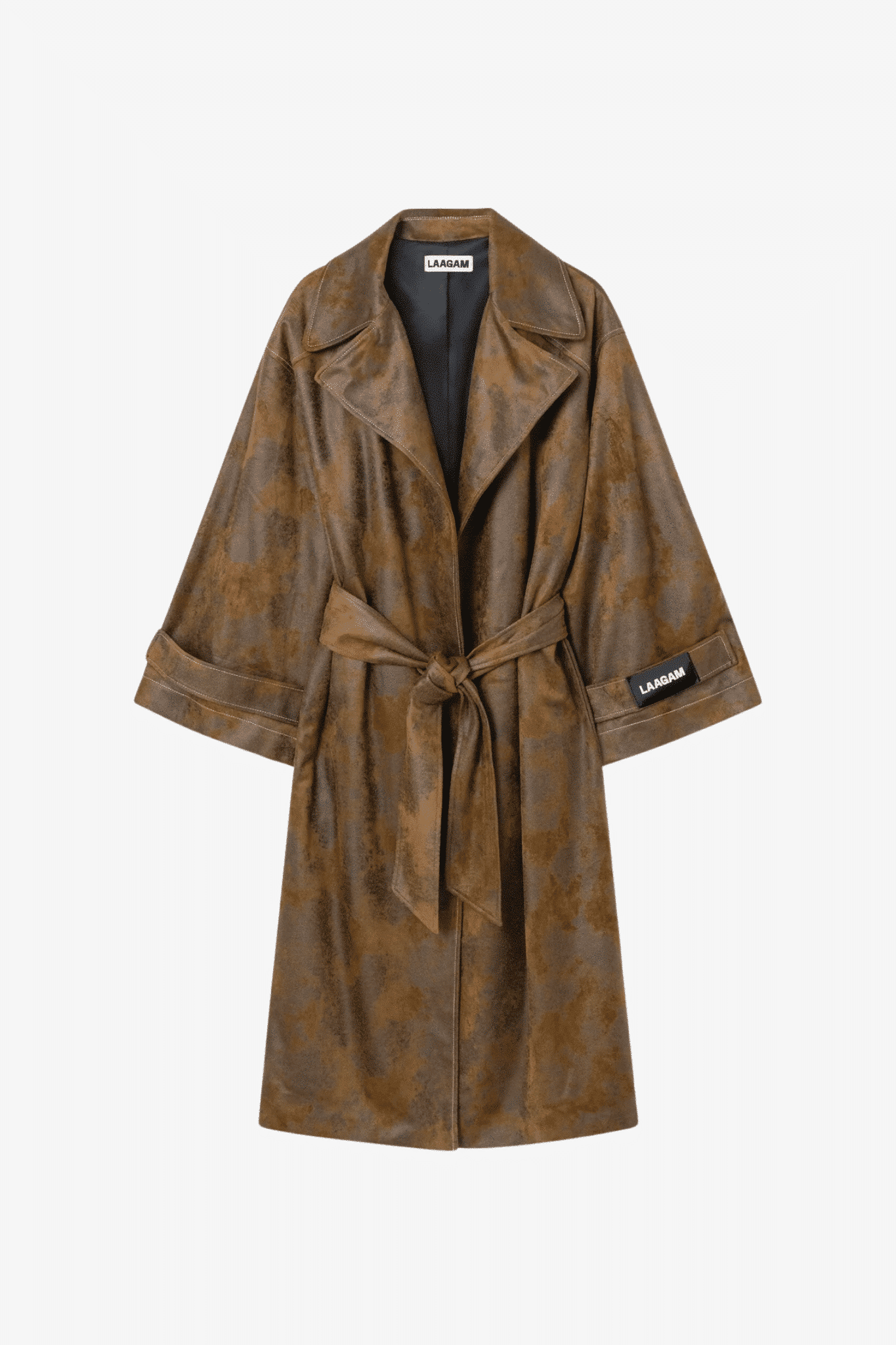 De Laagam oversized suède trenchcoat is een stijlvolle optie voor dames die op zoek zijn naar een veelzijdige en comfortabele jas. Wat deze trenchcoat bijzonder maakt, zijn de opvallende contrasterende stiksels en de zwarte voering die voor een luxe uitstraling zorgen.