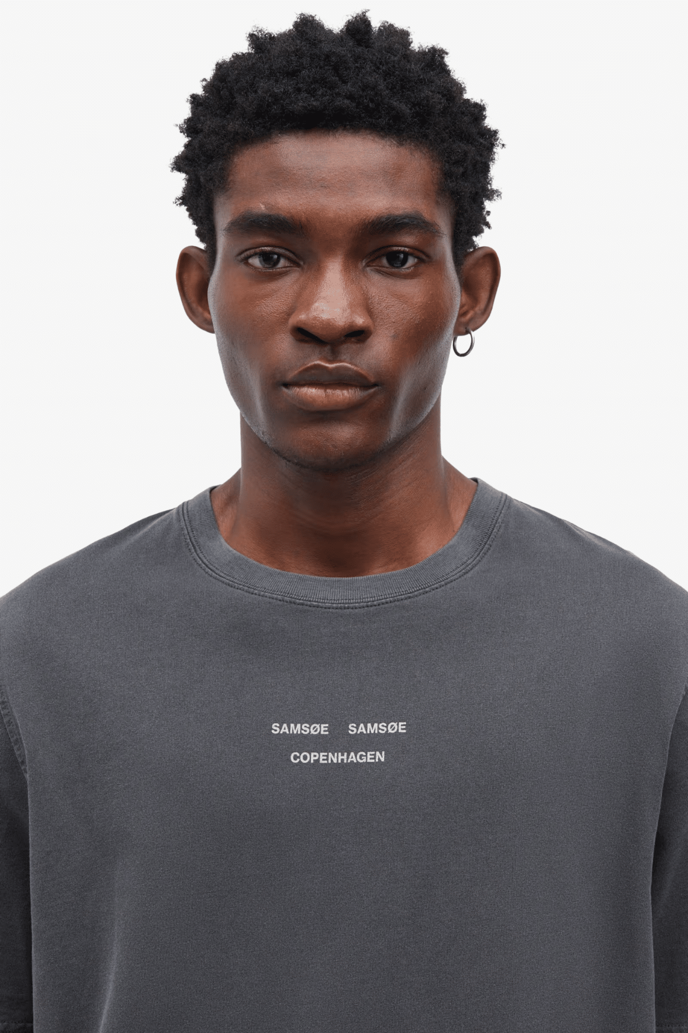 Ontdek het Jersey T-shirt van Samsoe Samsoe, de perfecte keuze voor elke modieuze man die op zoek is naar een duurzame en comfortabele basic. Dit T-shirt heeft een normale pasvorm en korte mouwen, ideaal voor casual dagelijkse outfits. De ribgebreide ronde hals zorgt voor extra comfort en stijl, terwijl het iconische Samsøe Samsøe-logo de voorkant siert, wat het een tijdloze keuze maakt voor elke garderobe.