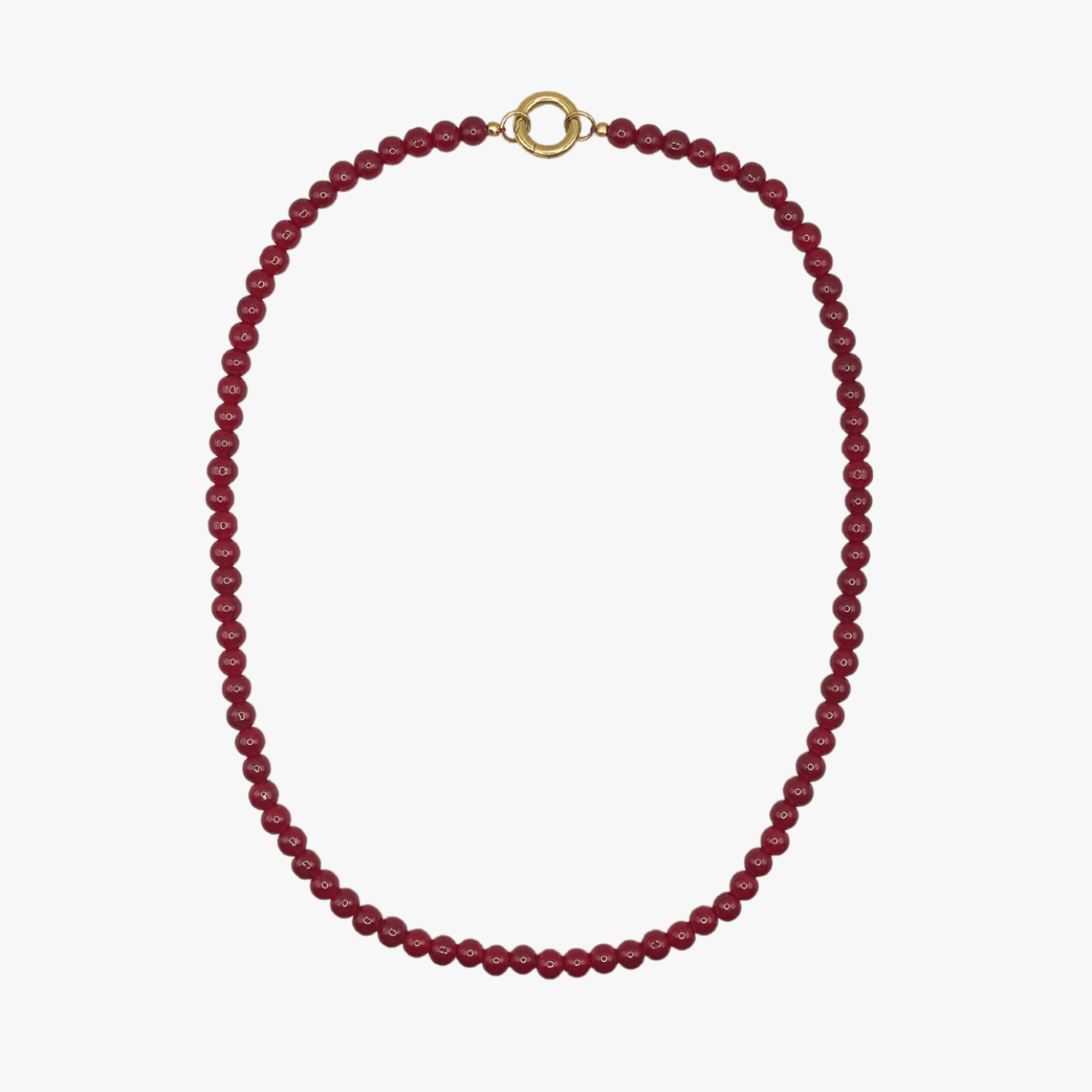 Met een lengte van 42 cm is deze ketting ideaal voor een verfijnde en toch opvallende uitstraling. De combinatie van roestvrij staal en 18K vergulding verzekert je van een duurzame kwaliteit die lang meegaat. Het sprankelende rood van de kralen maakt dit sieraad een echte blikvanger.