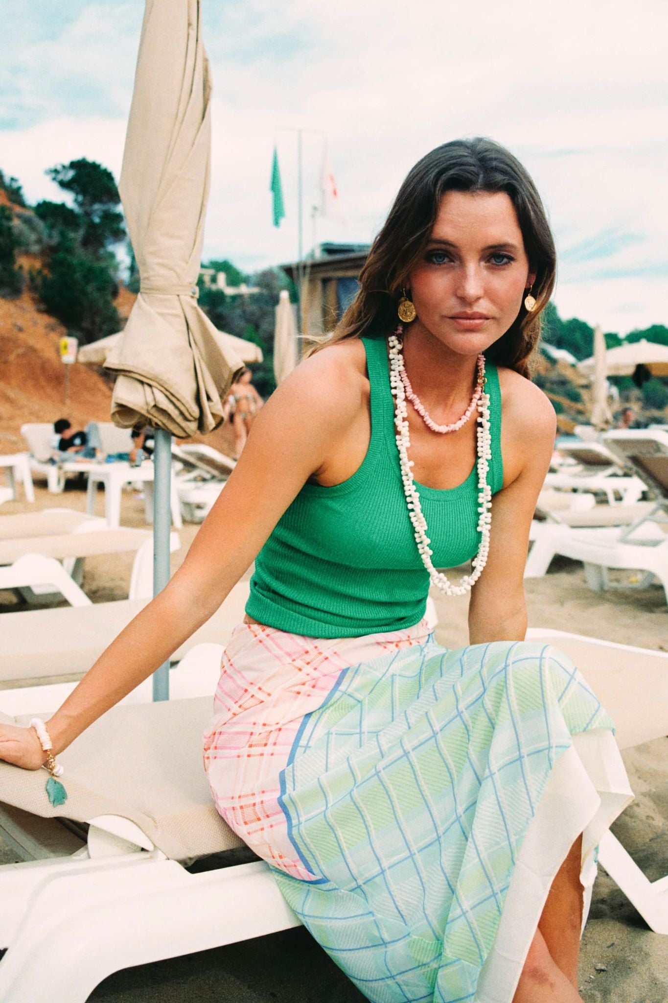 Finished with a 14K gold-plated stainless steel clasp, it combines durability with a luxurious feel. With a length of 44 cm, it sits slightly lower on the neckline. Perfect for layering or wearing as a soft statement piece.