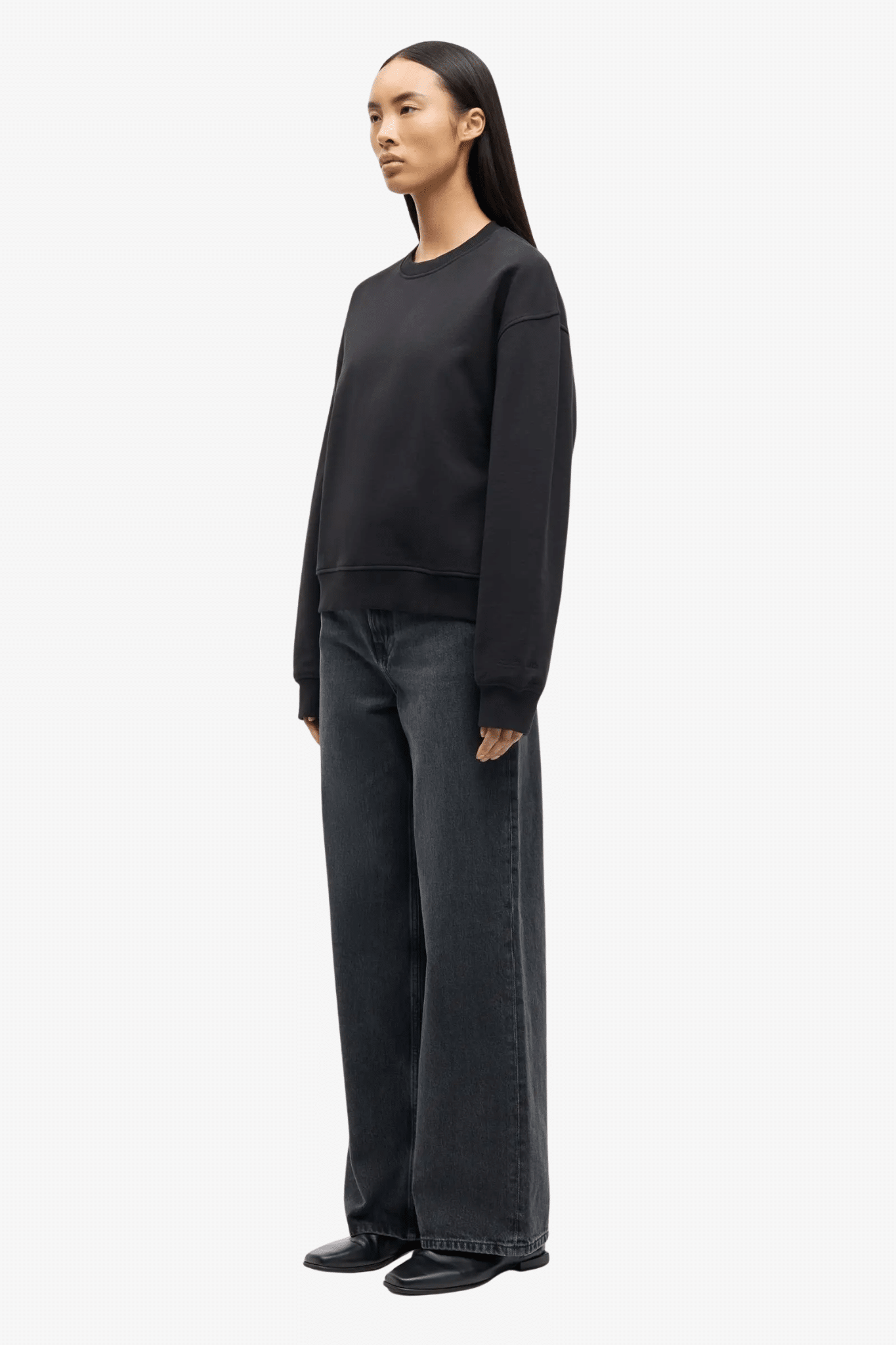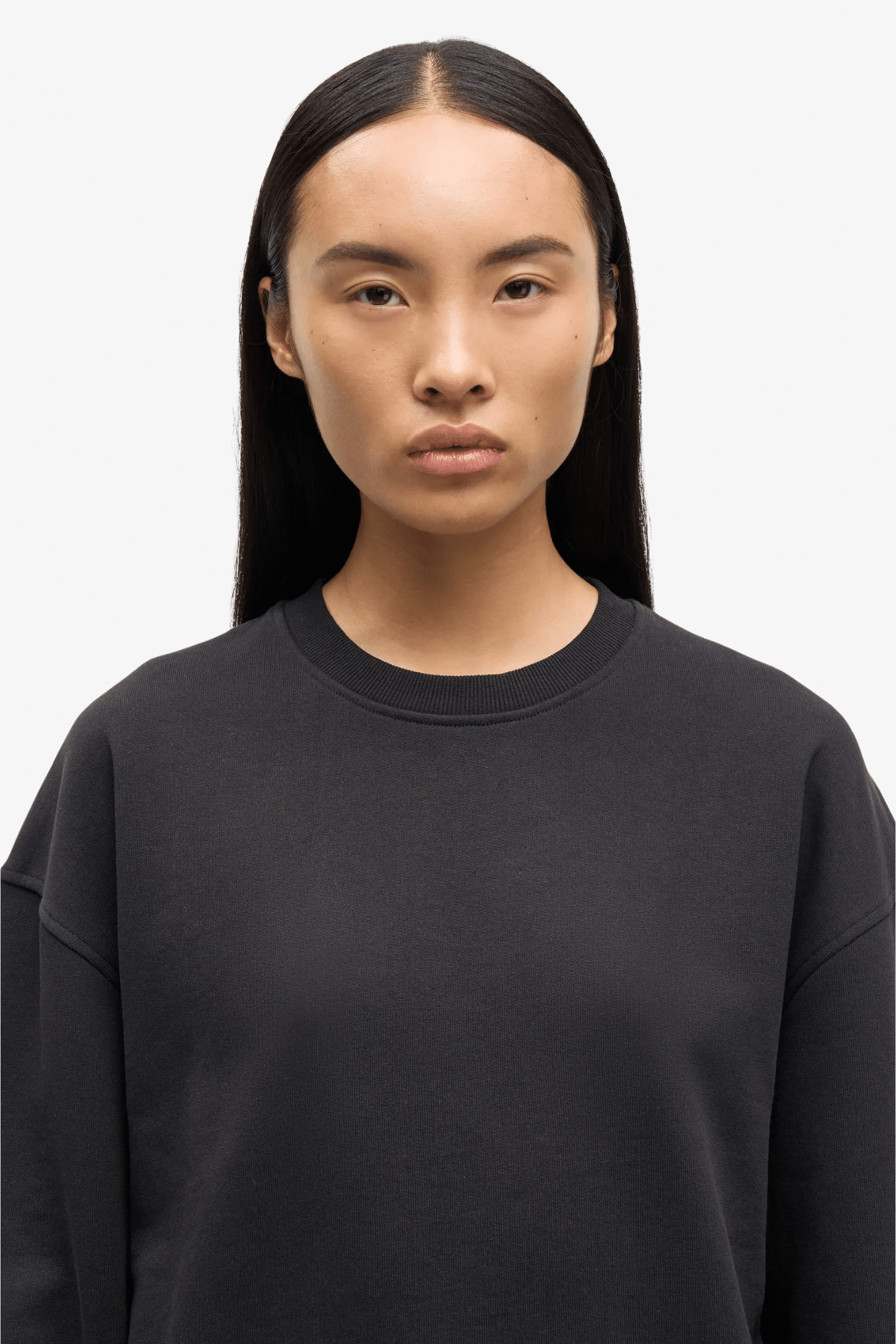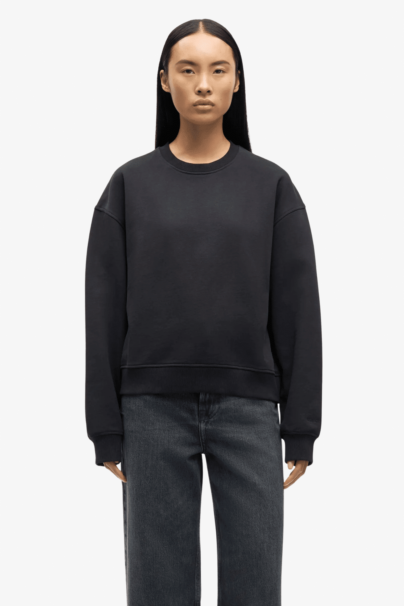 The Samsoe Samsoe Savan jersey sweatshirt combines comfort with a relaxed fit, ideal for women seeking both style and ease. Featuring long sleeves, dropped shoulders, and a discreet embroidered logo on the sleeve, this sweatshirt is crafted from 100% organic cotton for a soft feel and eco-friendly appeal. Its ribbed crew neck, cuffs, and hem provide a classic finish. The black color ensures versatile styling options. For any inquiries about this product, our customer service team is ready to assist you.
