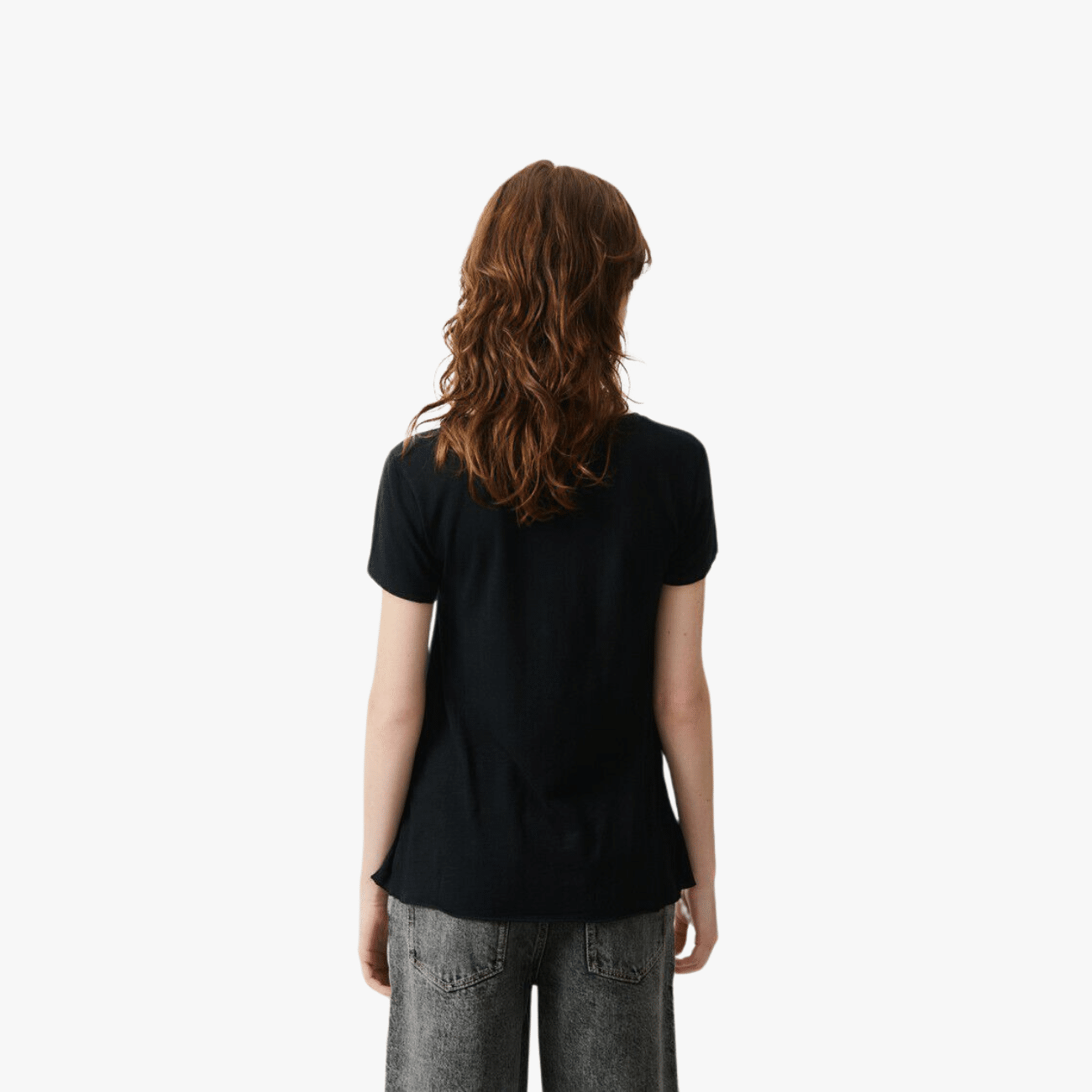 Ontdek het tijdloze T-shirt voor dames van American Vintage, een essentiële aanvulling op elke garderobe. Dit hoogwaardige T-shirt is vervaardigd uit 52% katoen en 48% viscose, waardoor het zacht en comfortabel aanvoelt. Verkrijgbaar in de klassieke kleuren wit, zwart en grijs, kun je eenvoudig combineren en variëren.