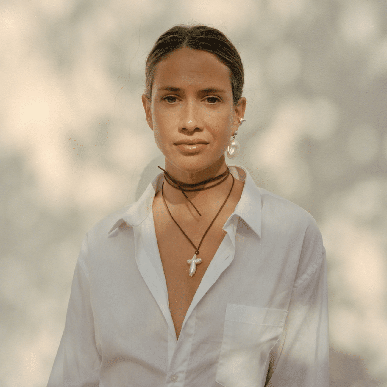 Natuurlijk parelkruis ketting op een gekleurd turquoise koord van Pit Bomans. Deze unieke ketting biedt een perfecte combinatie van stijl en spiritualiteit. Het natuurlijk parelkruis draagt bij aan een bohemian uitstraling en is ideaal voor de modebewuste vrouw die houdt van bijzondere sieraden.