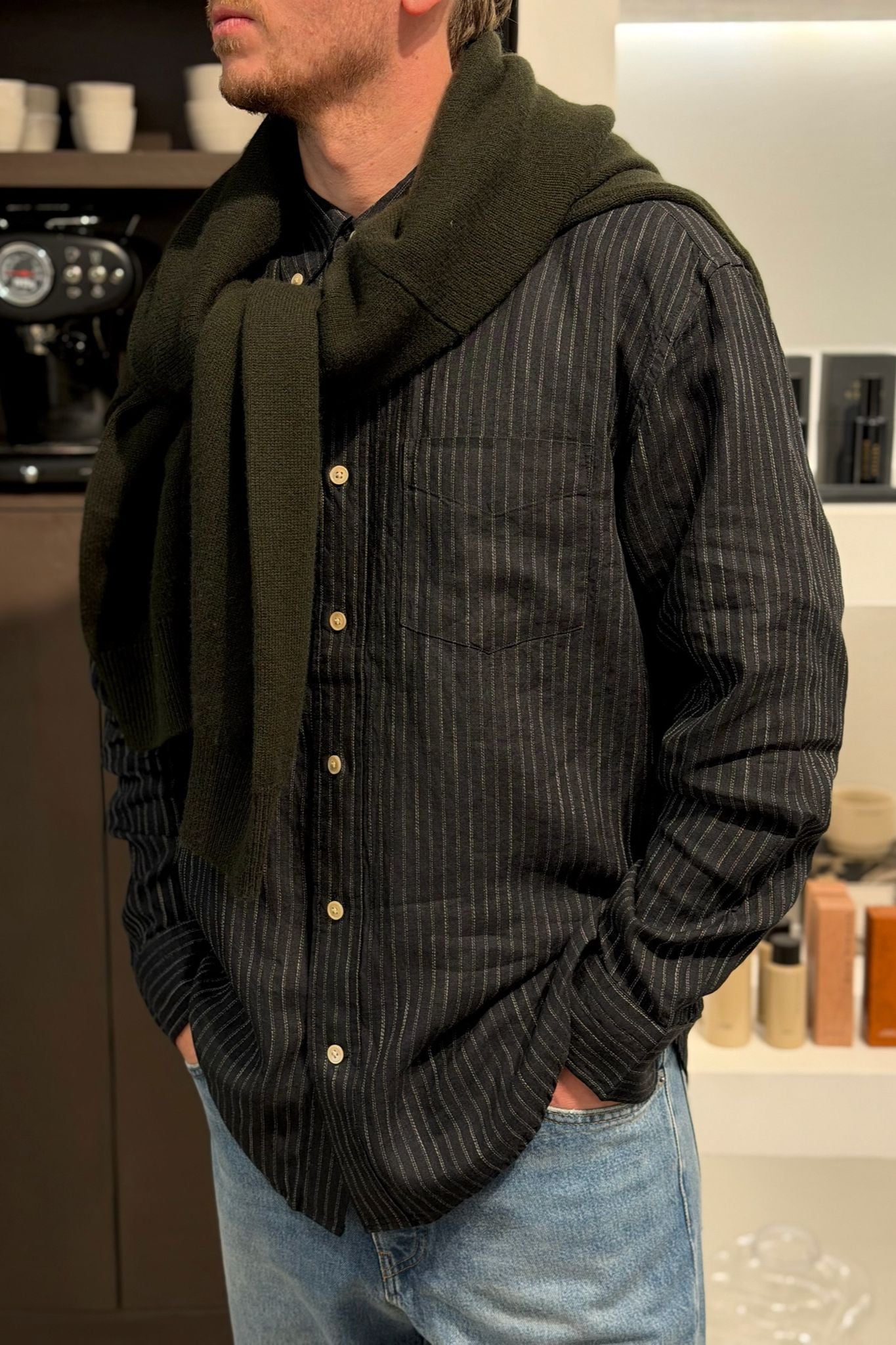The Striped Linen Button-Down Shirt by Sunflower is a timeless wardrobe essential, crafted from breathable linen with a subtle yarn-dyed stripe. Lightweight and naturally textured, the fabric offers effortless comfort while maintaining a clean, elevated look.
