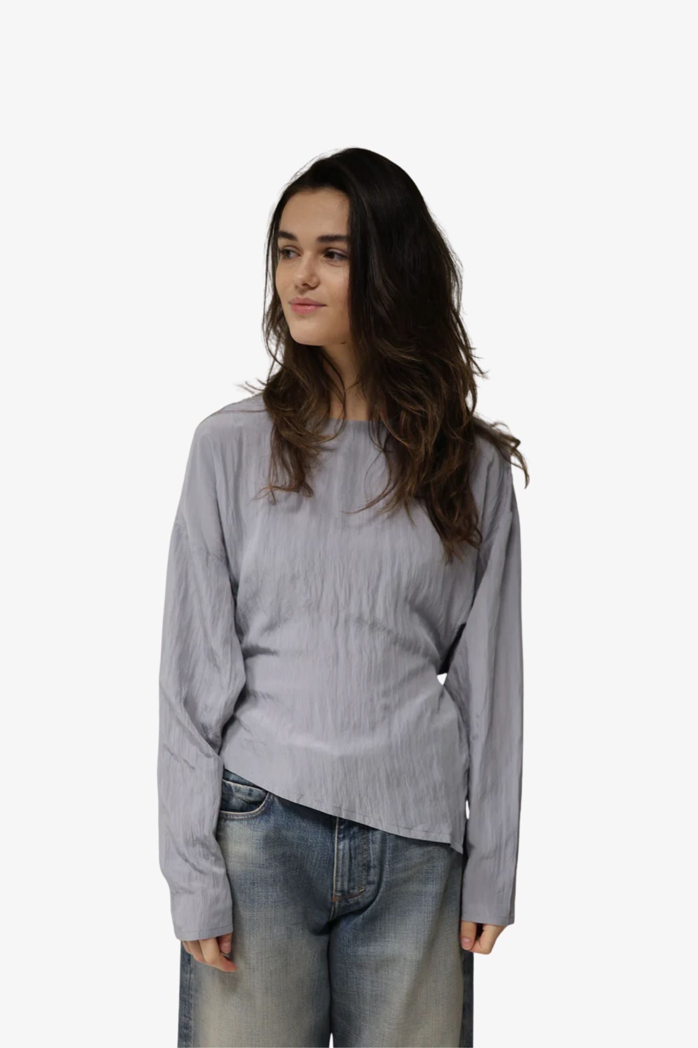 The asymmetrical hem enhances the dynamic shape, creating movement and architectural interest. Designed for versatile styling, this shirt transitions seamlessly from tailored looks to relaxed layering, embodying understated Scandinavian minimalism.