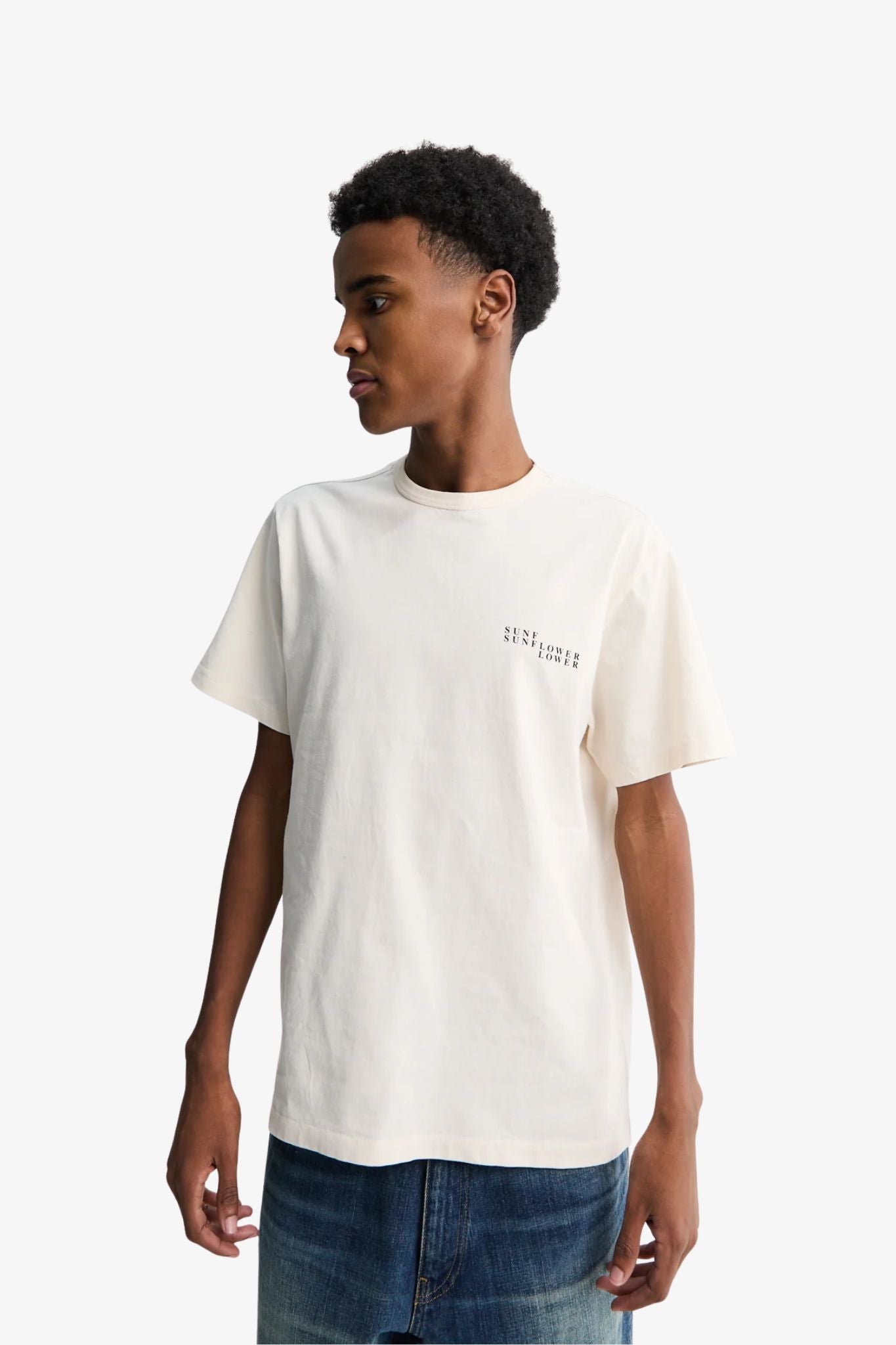 Perfect for those searching for Sunflower logo T-shirt, organic cotton tee, 195 gsm jersey T-shirt, Scandinavian minimalist clothing, regular fit graphic tee, premium basic T-shirt, and Copenhagen fashion brand essentials.