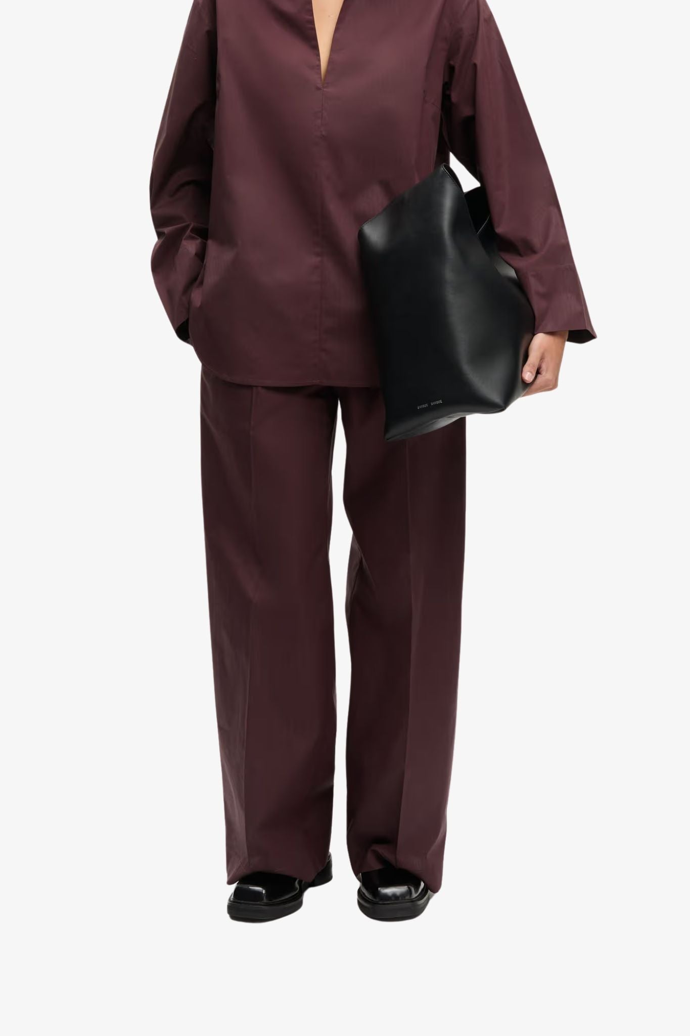 • Loose fit, wide-leg trousers