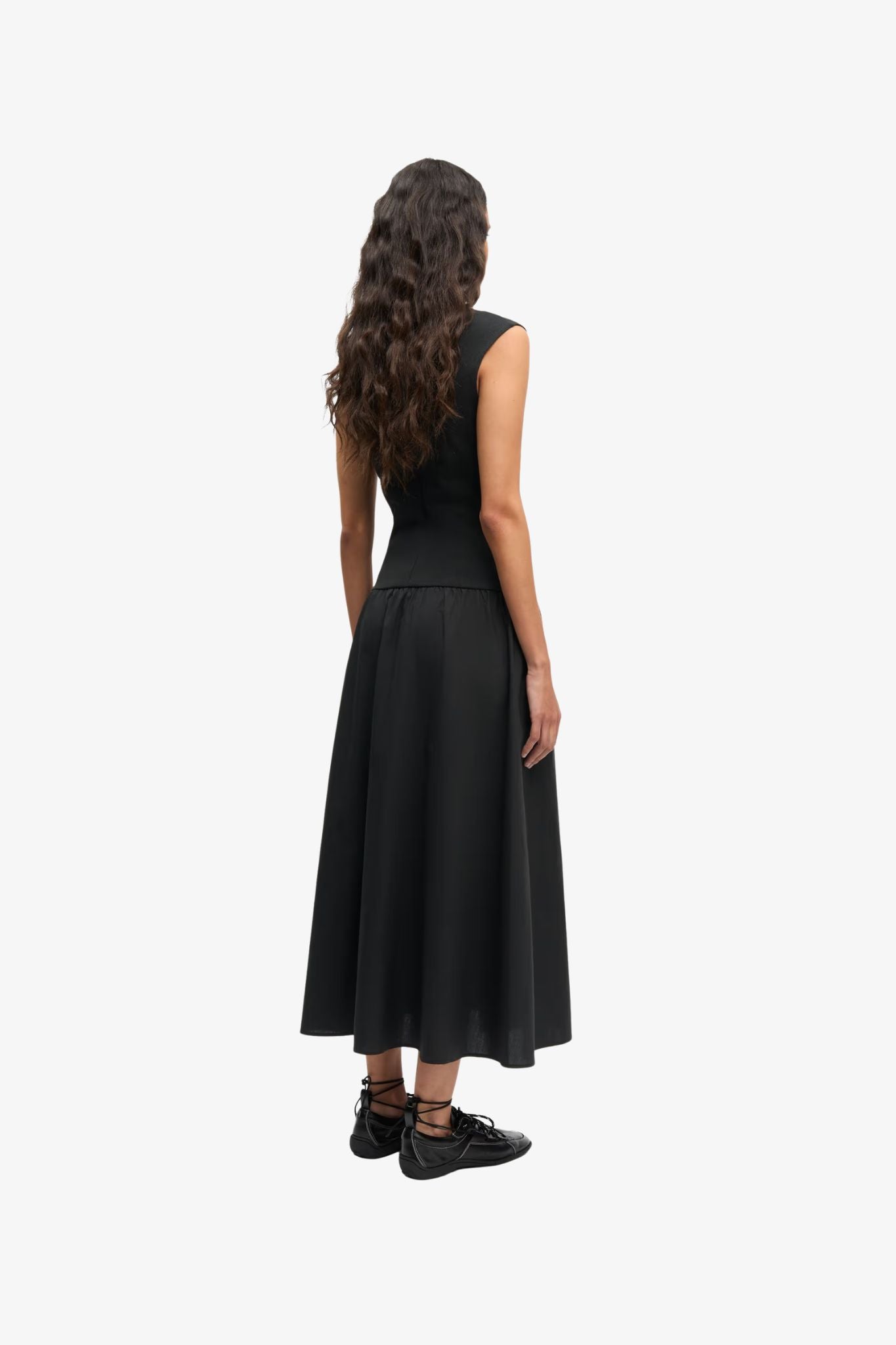Slim fit bodice with flared maxi skirt