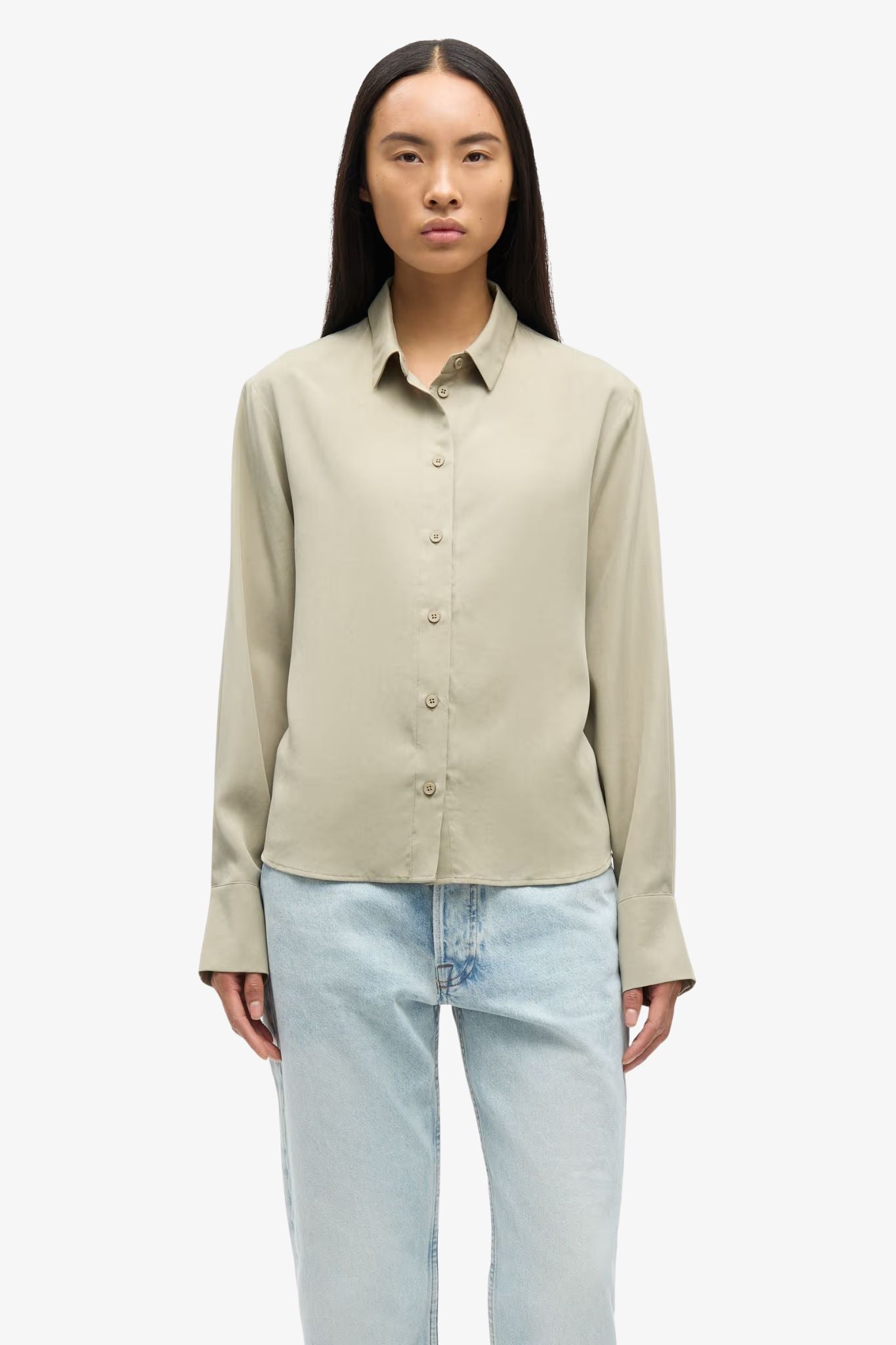 Long-sleeved shirt by Samsoe Samsoe with a regular fit and rounded hem. Button closure on the front and buttoned cuffs. Neck yoke seam with pleat. Main material made from 100% TENCEL™ Lyocell. This product contains TENCEL™ Lyocell, certified with the EU Ecolabel for textile products (licence no. AT/016/001) for environmental excellence.