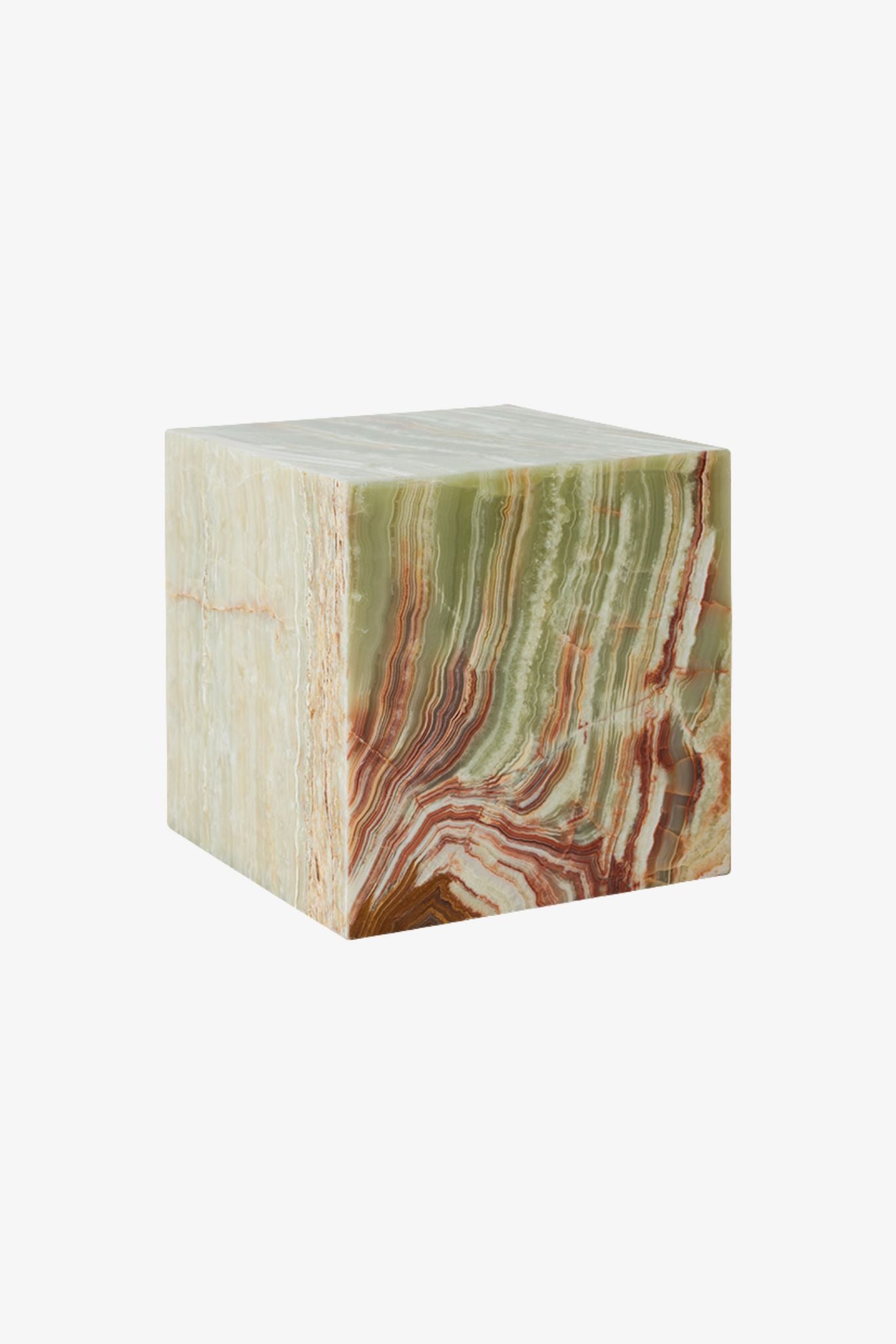 Sculptural elegance meets functional design with this striking onyx marble block table by hkliving. 35cm x 35cm. Crafted from natural stone, each piece showcases unique veining and rich, deep tones that command attention in any interior. The minimalist geometric form—a solid marble block—creates a bold statement while providing a sturdy surface for display or everyday use. Perfect for those who appreciate artisanal craftsmanship and contemporary aesthetics, this table elevates a living space with understated luxury and timeless appeal.