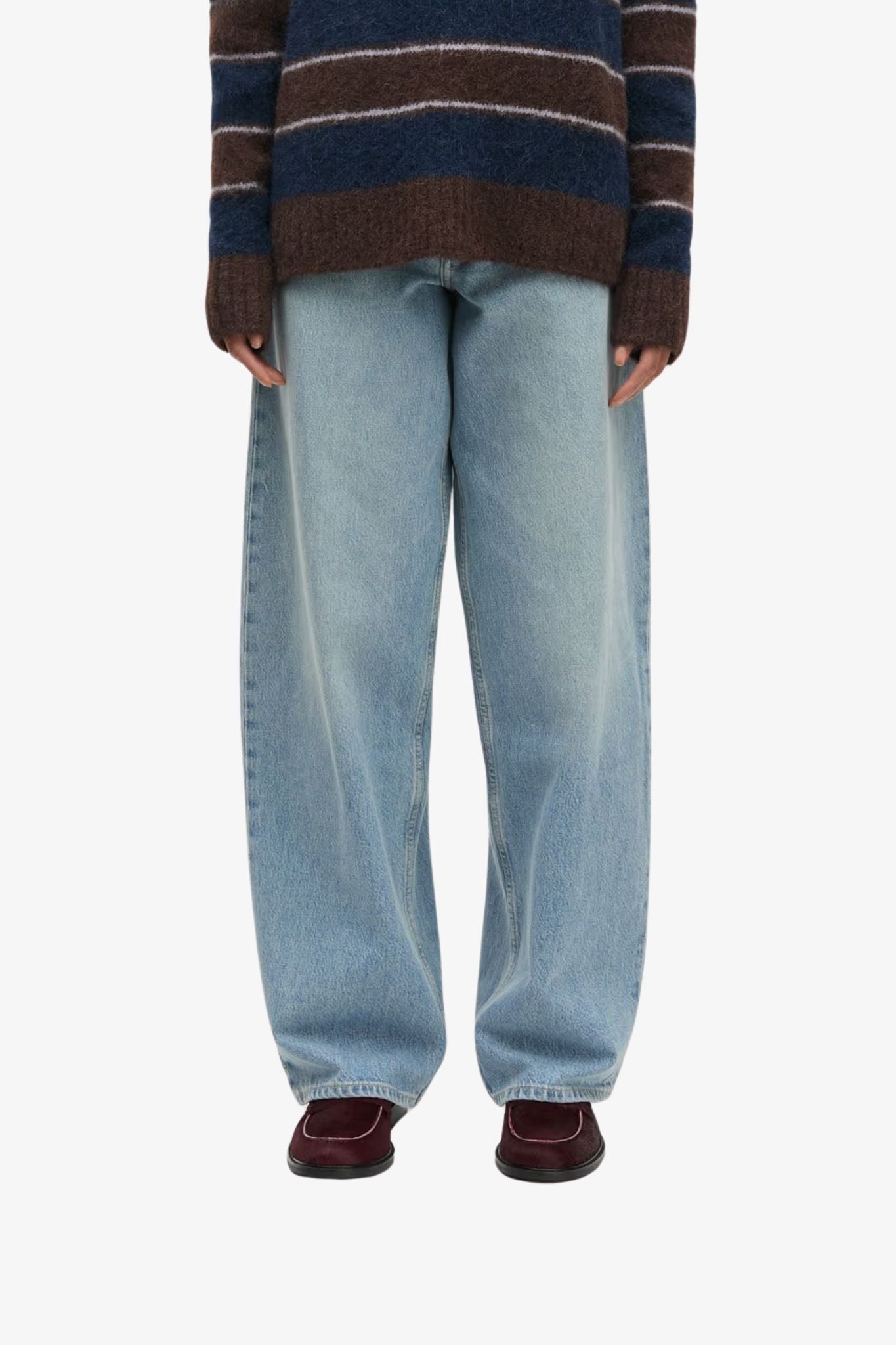 Effortless and versatile, these mid-waist jeans from Samsoe Samsoe feature a relaxed fit with gently curved legs, creating a modern silhouette that moves with you. Designed with classic five-pocket styling, belt loops, and a matching thin belt for added shape. The front zipper and button closure complete the clean, elevated look.