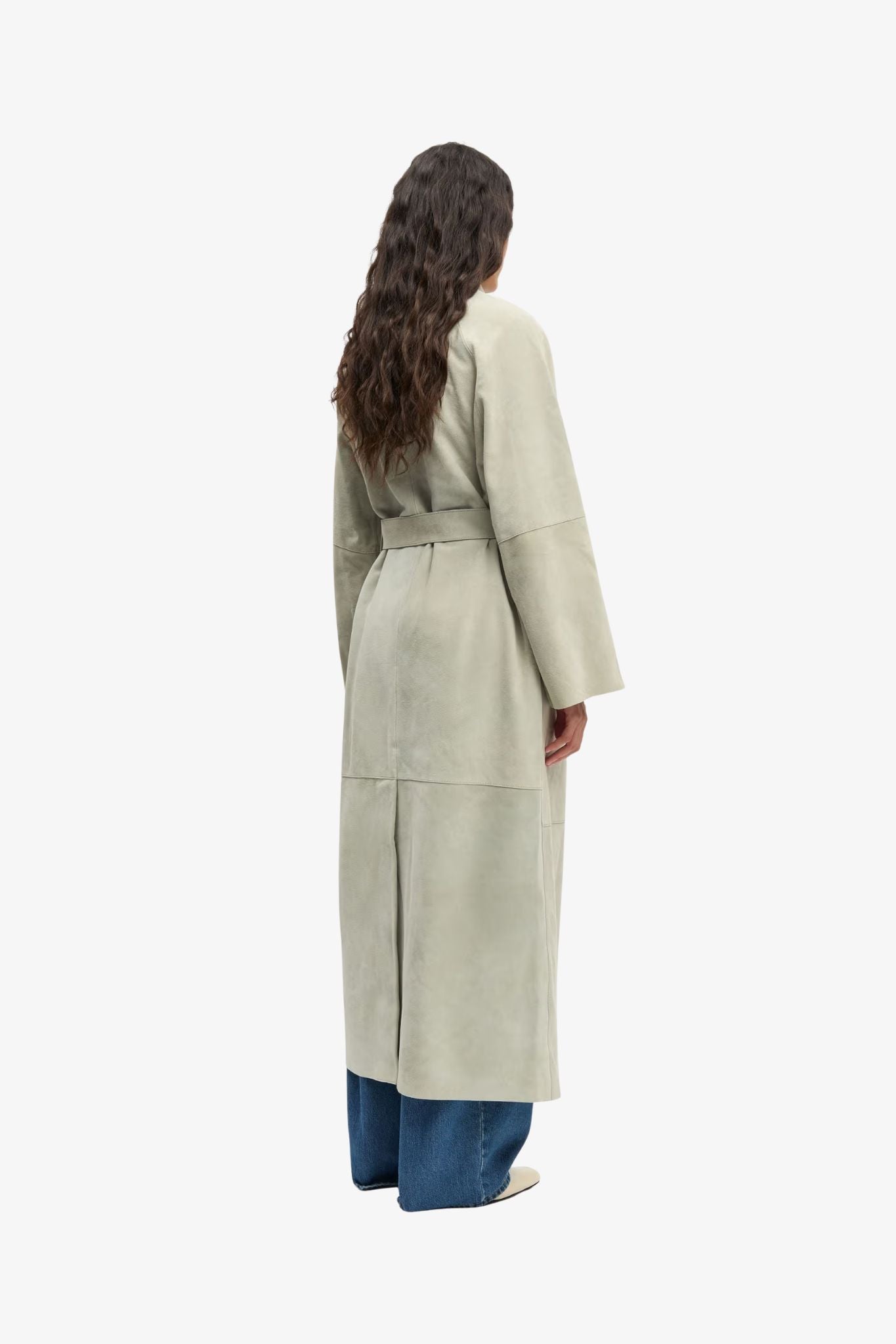 The Suede Coat from Samsoe Samsoe brings effortless sophistication to your outerwear rotation. Crafted from 100% cow suede sourced from LWG-certified tanneries, it features a relaxed fit, belted waist, pointed collar, and clean straight hem with a subtle back slit. Side seam pockets add functionality, while the soft suede ensures comfort and a luxurious finish.