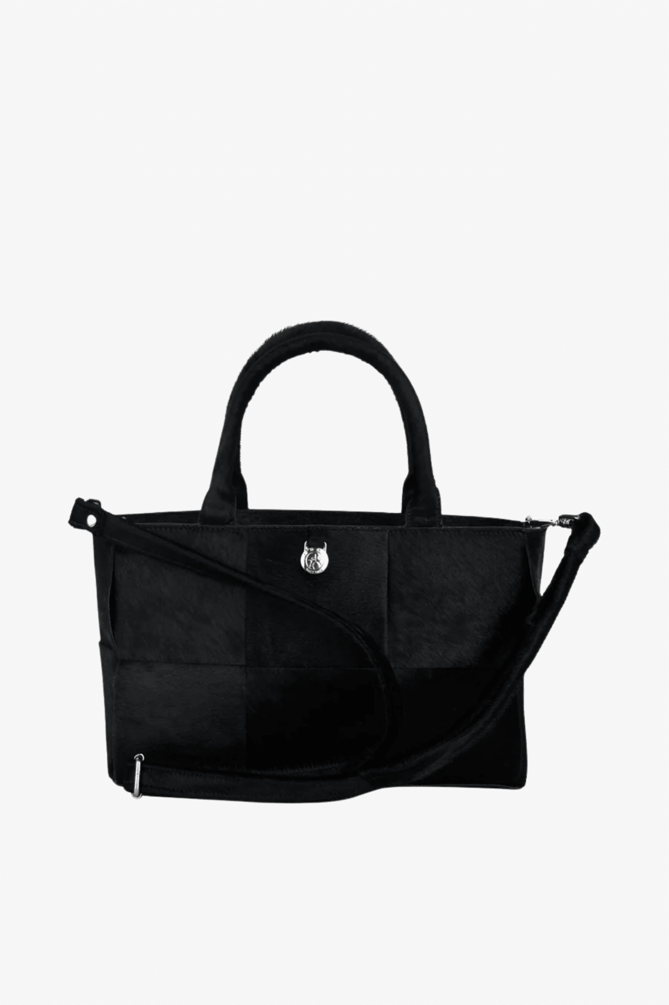 Ontdek de luxe van de compacte handtas van ADAX, perfect voor de modebewuste vrouw. Deze tas van hoogwaardig haar-on leer met een stijlvol vierkant weefsel combineert esthetiek met functionaliteit. De tas, afgewerkt in klassiek zwart, is ideaal voor elke gelegenheid dankzij de compacte afmetingen van L/H/D = 31x19x10 cm.
