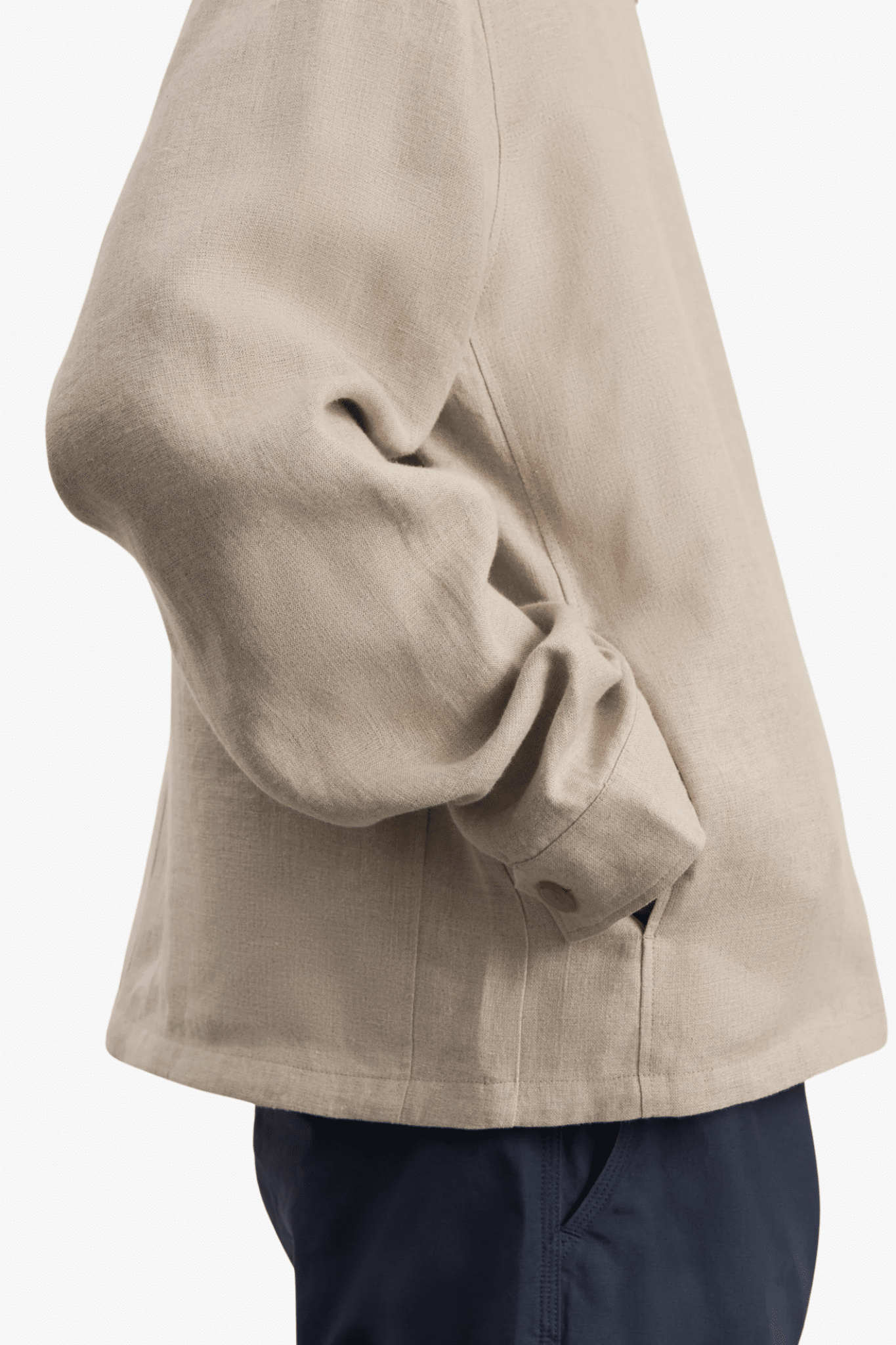 Dit overshirt is vervaardigd uit zacht linnen met een aantrekkelijke textuur, waardoor het niet alleen comfortabel is om te dragen, maar ook een luxe uitstraling heeft. De twee discrete zijnaadzakken en de verborgen borstzak creëren een strakke en functionele look, waardoor je persoonlijke spullen veilig en stijlvol kunt opbergen.