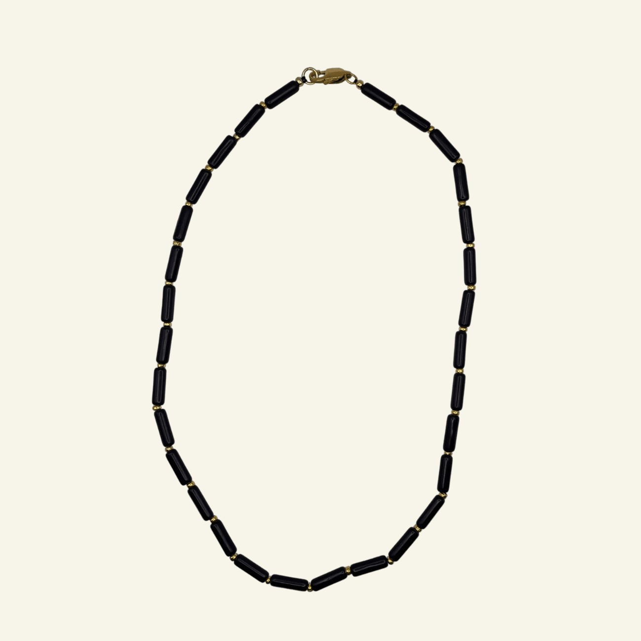 Met een lengte van ongeveer 44 cm valt de ketting perfect rond de hals en voegt het een vleugje verfijning toe aan elke outfit. De diepzwarte kleur van de kralen blijft tijdloos en stijlvol, ongeacht de trends. Dankzij de handmatige productie kunnen er kleine variaties zijn, waardoor elke ketting een uniek stuk wordt dat jouw persoonlijke stijl onderstreept.