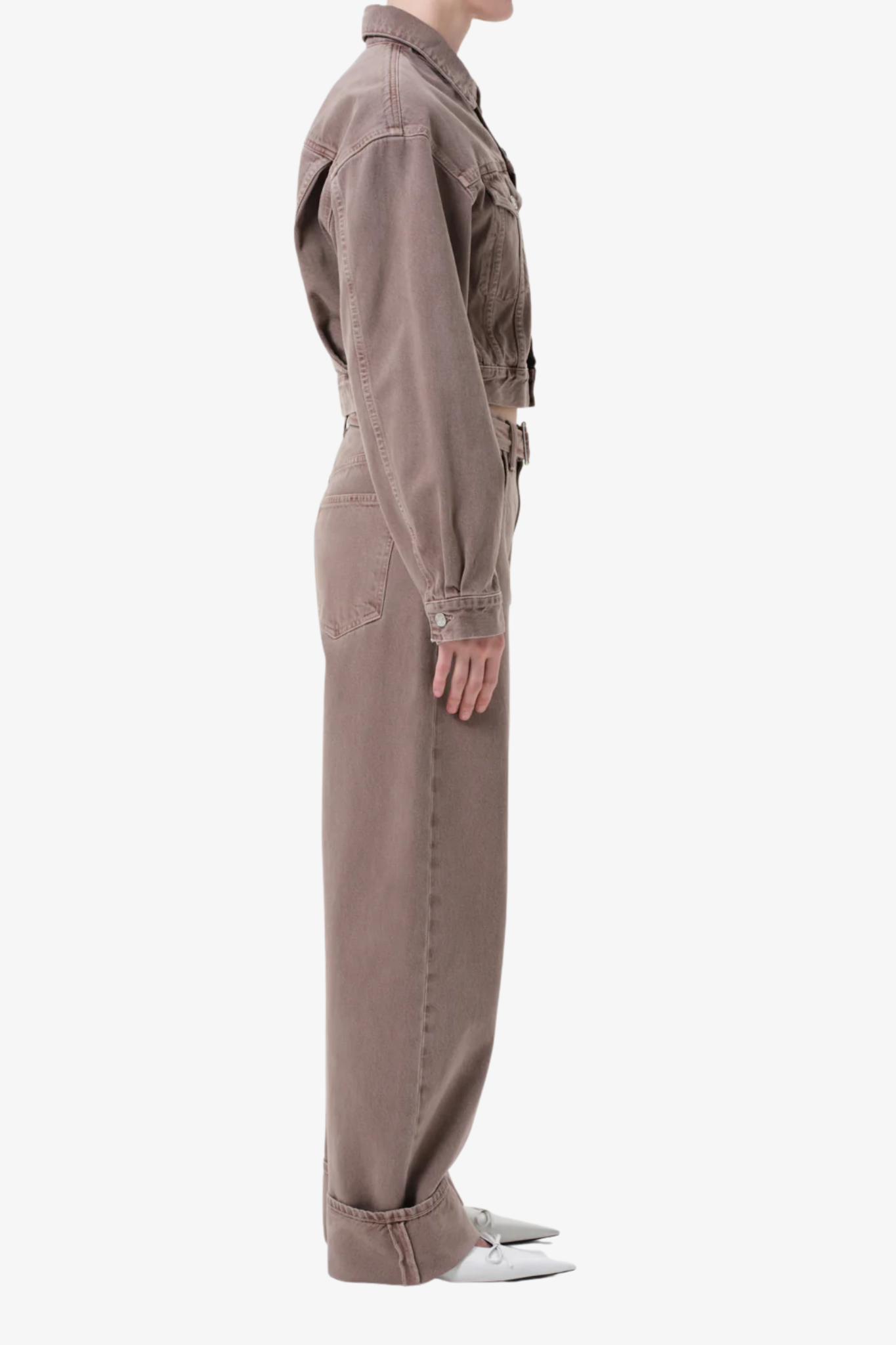 The Cuffed Taper is a relaxed, mid-rise silhouette with volume through the leg that tapers slightly at the ankle. Crafted from rigid, non-stretch regenerative cotton denim with a soft hand, this deep rose-toned wash features subtle marbling and an optional cuff for added shape and styling versatility. Pair with tonal layers or crisp shirting for a modern, balanced look.