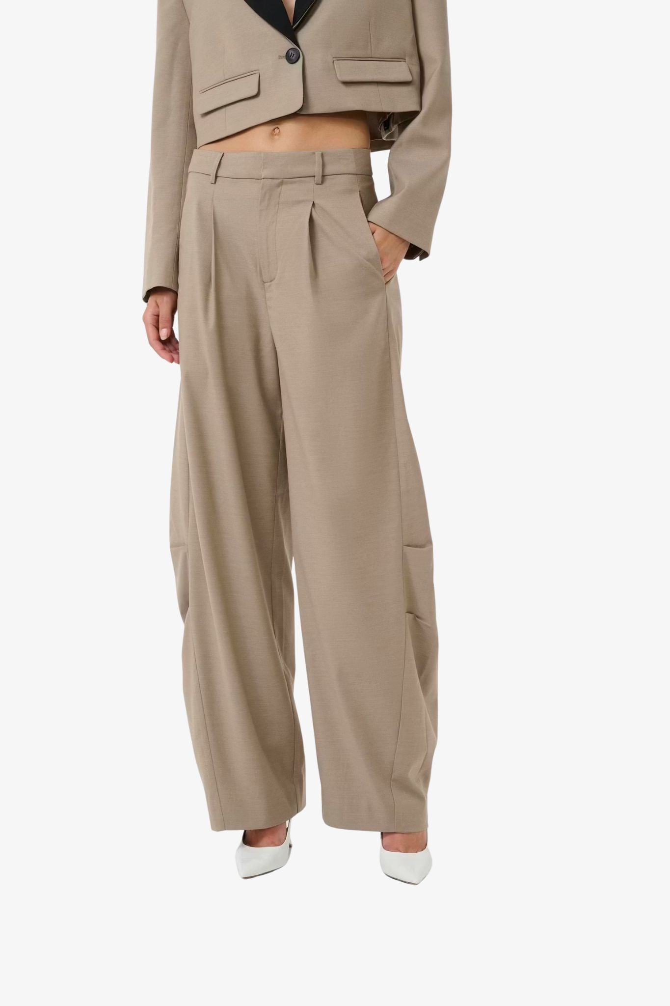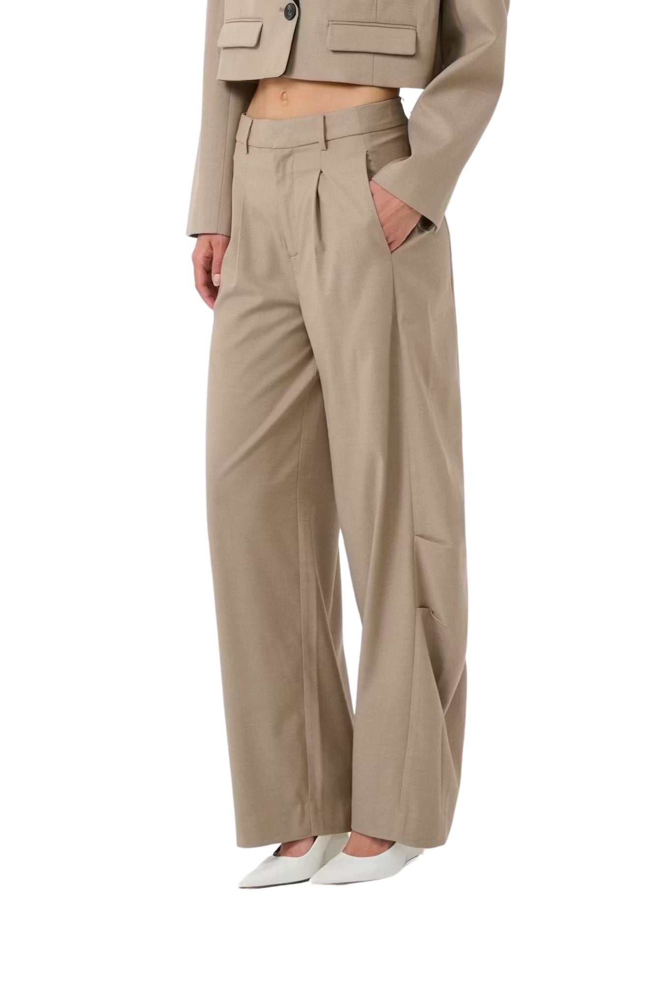 These wide-leg trousers from Gestuz combine modern tailoring with everyday comfort. Designed with a relaxed silhouette and elegant pleat details, they create a clean, contemporary look while maintaining an effortless feel. The classic waistband and adjustable elastic inside the waist ensure a comfortable and flexible fit throughout the day.