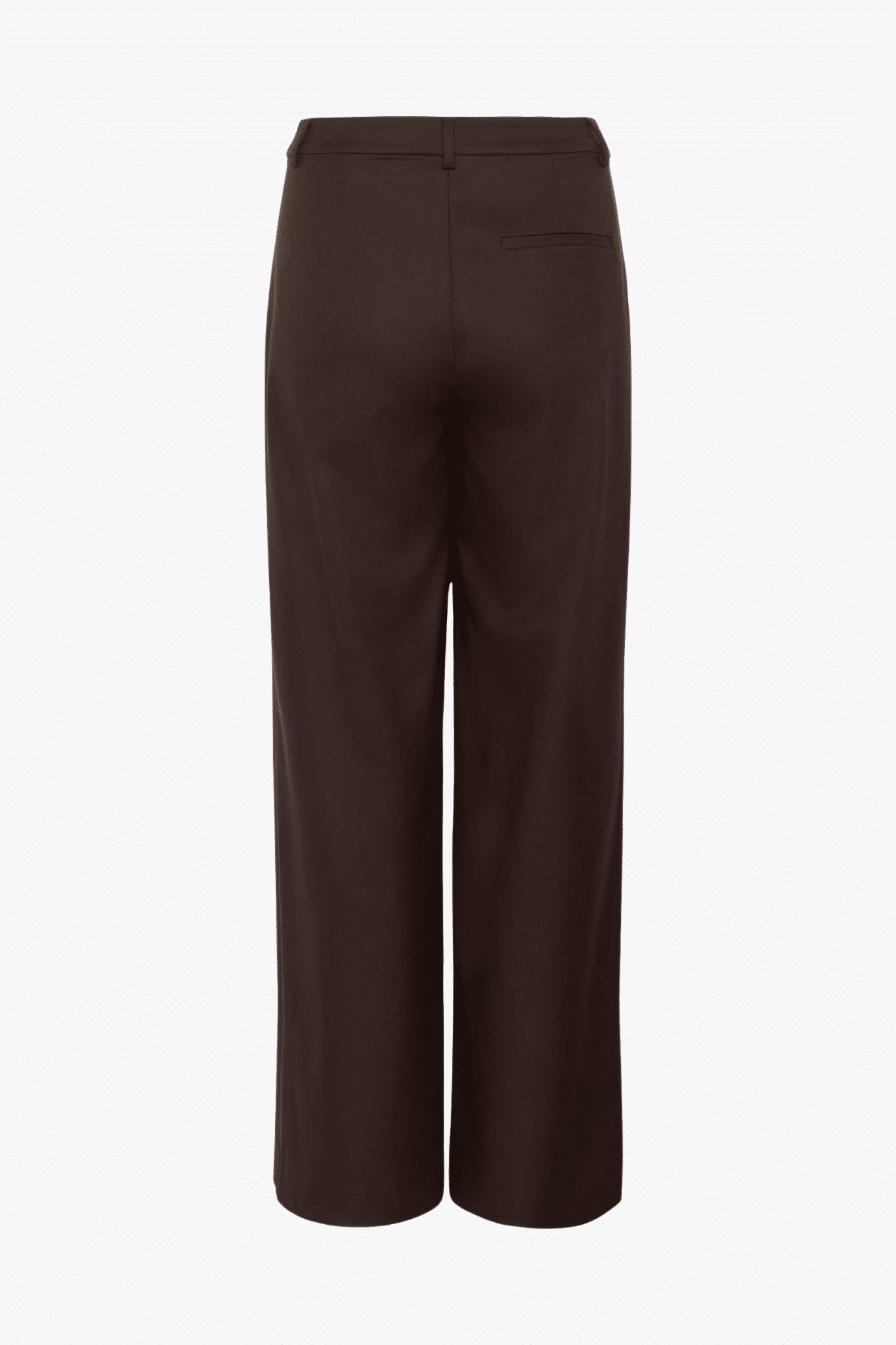 Ontdek de verfijnde stijl en het ongeëvenaarde comfort van de Gestuz broek met wijde pijpen voor dames, afgewerkt met elegante persvouwen aan de voorkant. Deze bruine broek is voorzien van praktische riemlussen en een klassieke ritssluiting, waardoor hij zowel stijlvol als functioneel is. Het model heeft een tijdloze uitstraling die gemakkelijk te combineren is voor zowel casual als zakelijke gelegenheden.