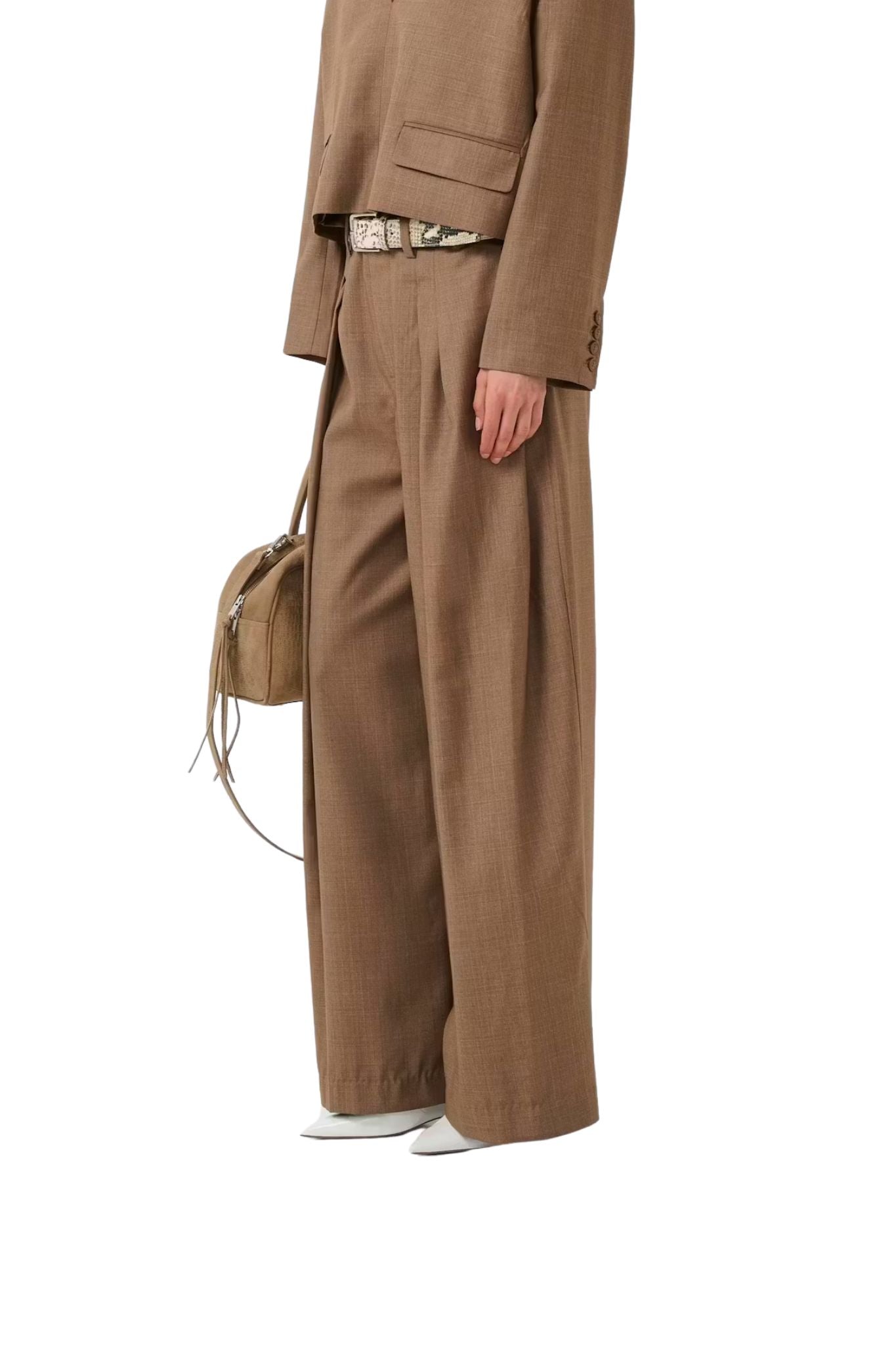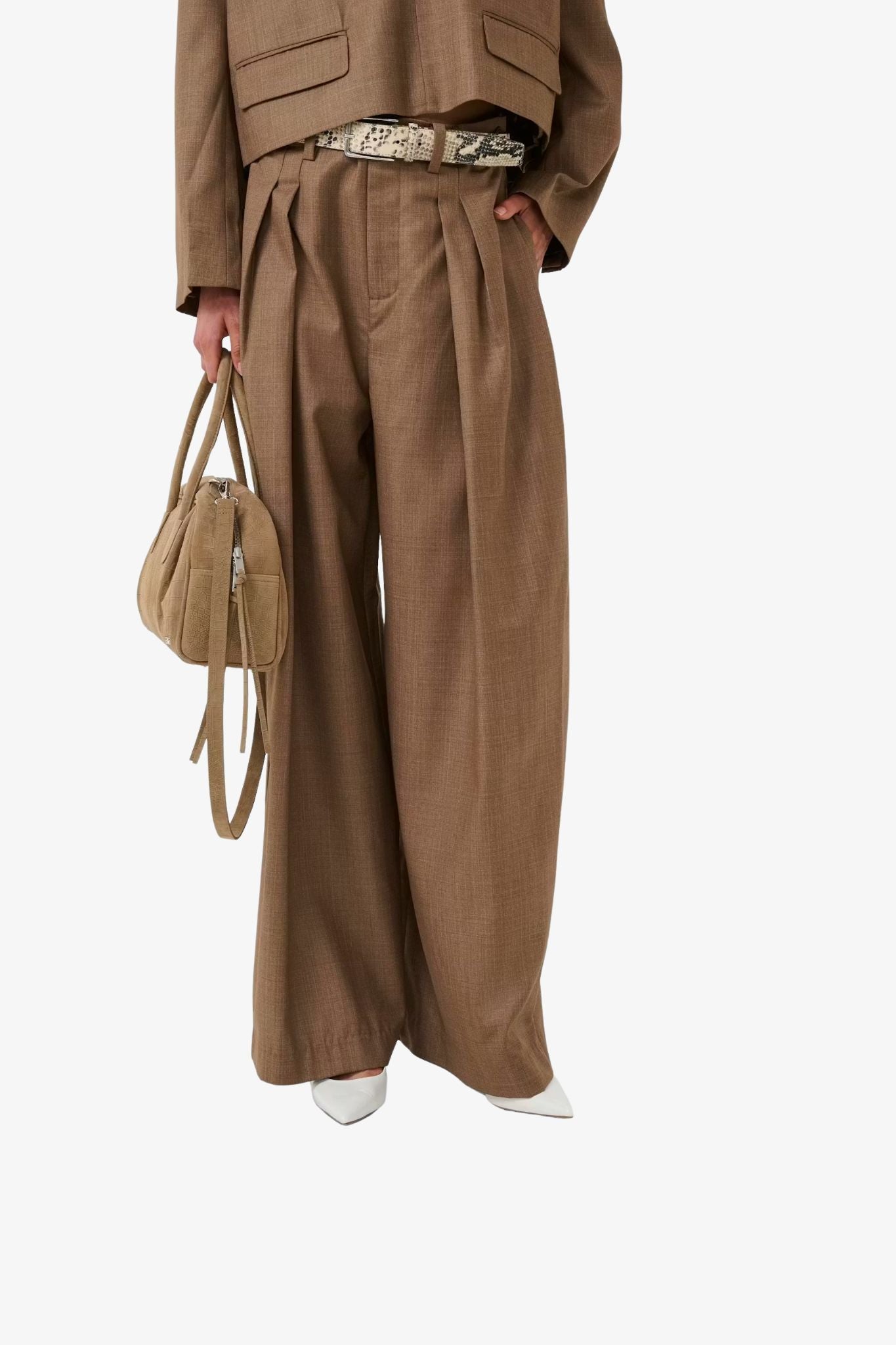 These wide-leg trousers from Gestuz offer the perfect balance between comfort and elegance. Designed with a relaxed silhouette and soft pleats, they create a flowing shape that moves effortlessly with you. The versatile design features button details at the side, allowing the trousers to be worn both mid-waist or high-waist, depending on the look you want to achieve.