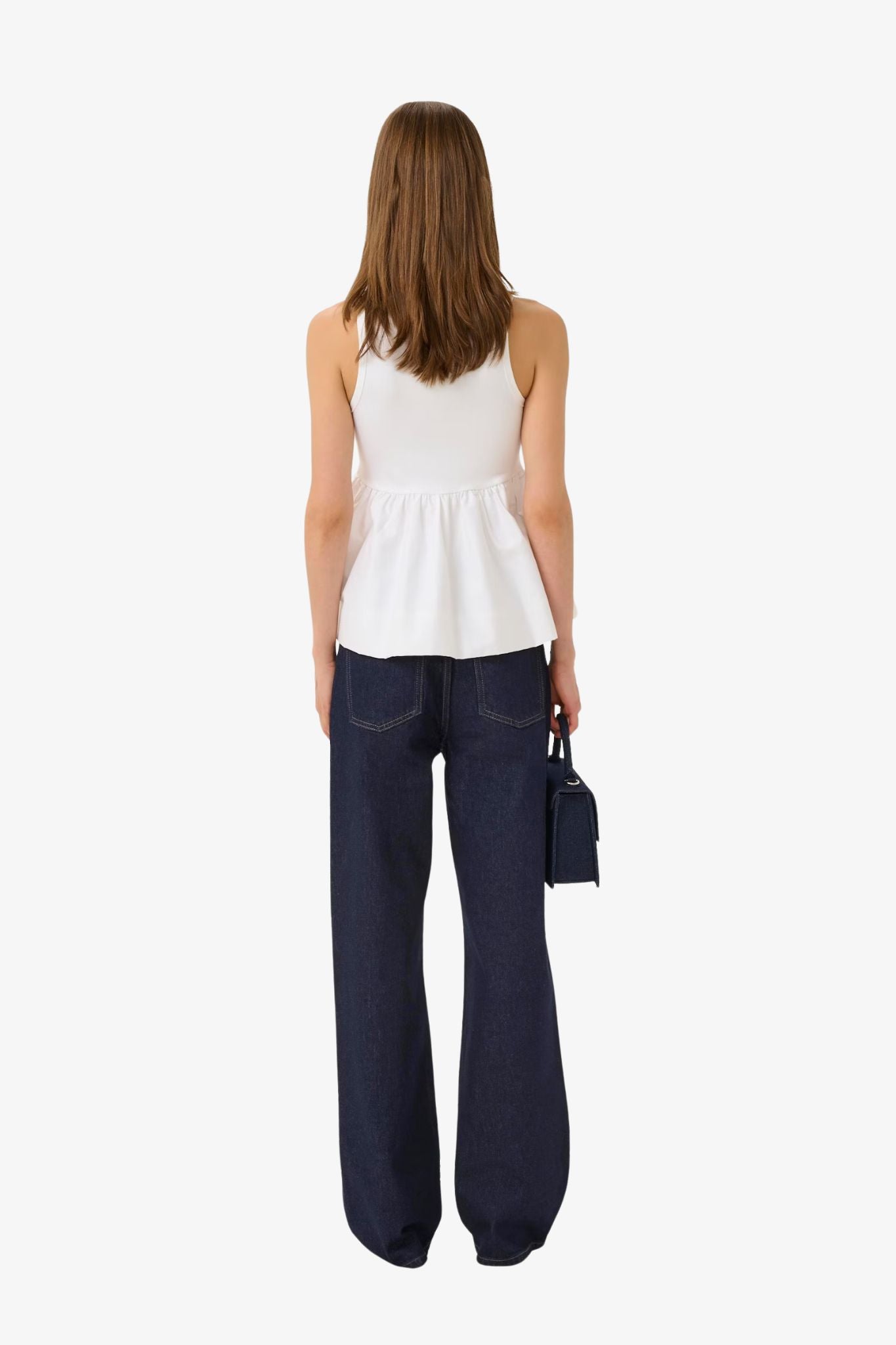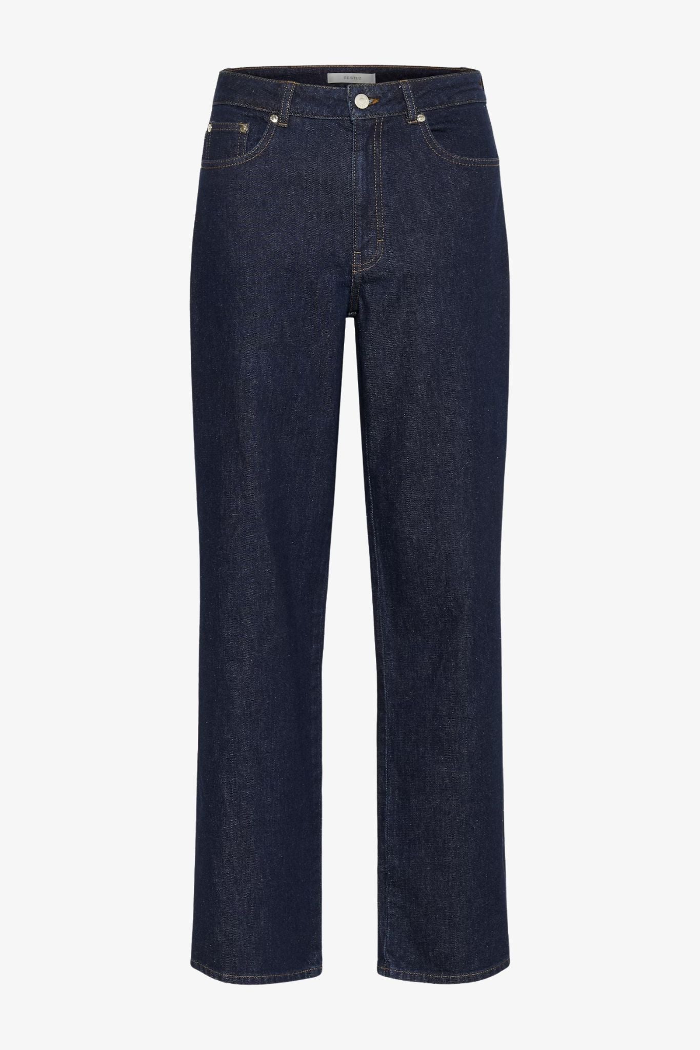 Deze klassieke jeans combineert elegante proporties met functioneel ontwerp. Het hoog getailleerde silhouet en de rechte pijpsnit creëren een gestructureerde, tijdloze uitstraling die moeiteloos bij diverse outfits past. De vijf zakken bieden praktische opbergruimte, terwijl de contrasterende stiksels subtiele visuele interesse toevoegt. Gemaakt van een duurzame katoen-elastaanmix voor optimaal comfort en bewegingsvrijheid. Een verfijnde basisstuk voor de garderobe.
