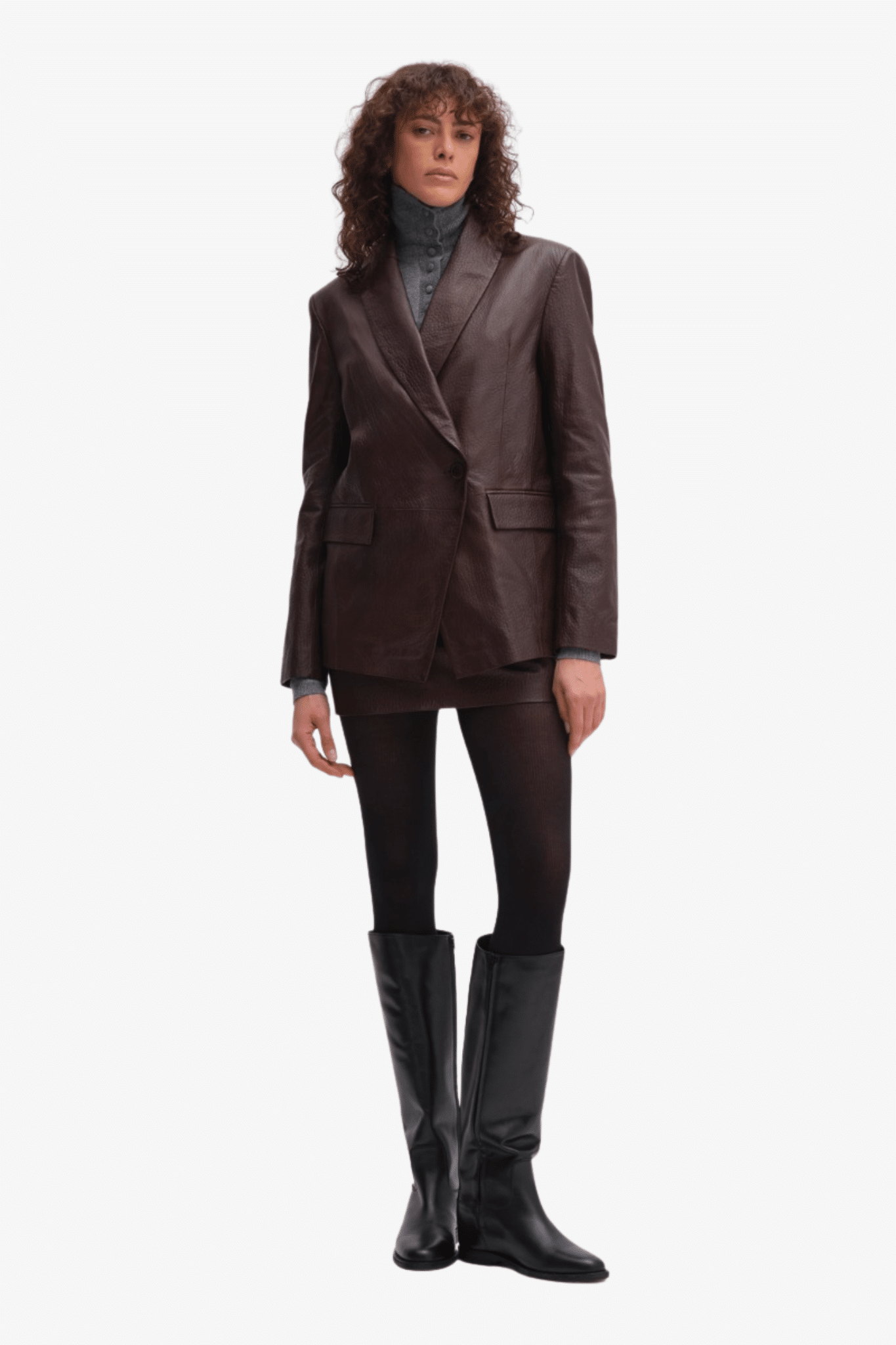 Stijlvolle leren blazer voor dames - Ontdek de elegante mix van casual en chique met de Remain Heavy Leather Blazer in Donkerbruin. Dit single-breasted model biedt een relaxte, gestructureerde pasvorm, perfect voor de modebewuste vrouw die comfort en stijl waardeert.