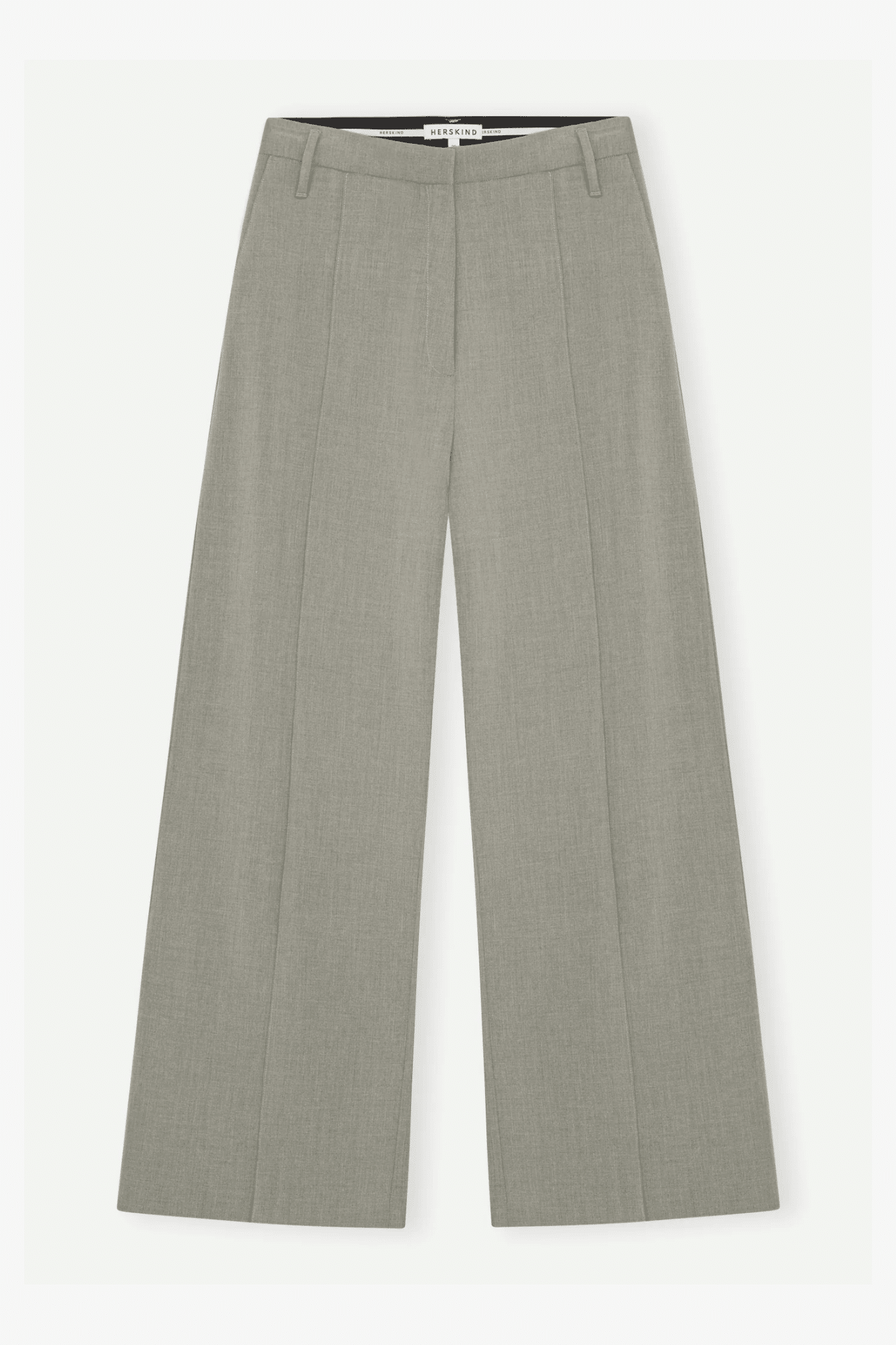 Ontdek de Kimberly Pants van het merk Herskind, een klassieke lange broek met een middelhoge taille, ontworpen voor vrouwen die houden van een tijdloze en elegante look. De voorzijde is voorzien van een gestikte vouwlijn, wat zorgt voor een verfijnde, op maat gemaakte uitstraling.