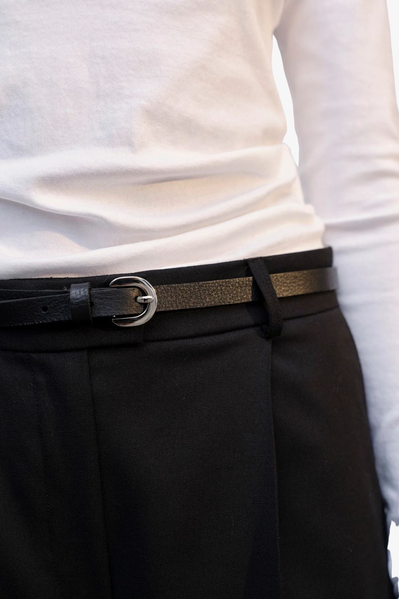 Of je nu een casual look of een zakelijke stijl wilt versterken, deze leren riem voegt altijd een verfijnde touch toe. Het slanke ontwerp maakt het een subtiel, maar elegant accessoire dat elke outfit naar een hoger niveau tilt.