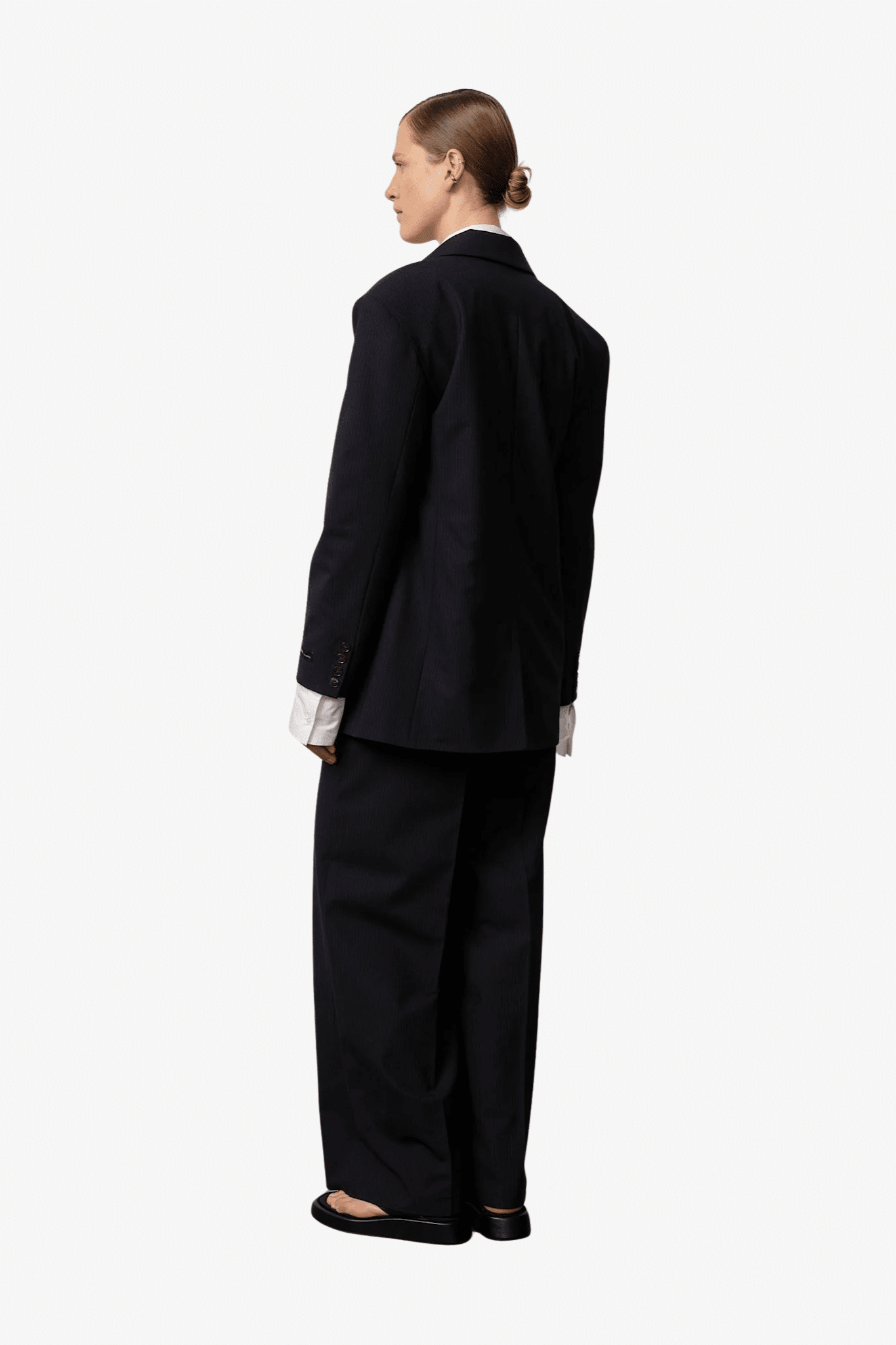 Een uniek kenmerk van deze blazer is het koorddetail, waarmee je je taille kunt accentueren door het om te slaan of aan de voorkant te strikken. Dit maakt het eenvoudig om de oversized pasvorm naar jouw persoonlijke voorkeur aan te passen. Gemaakt van hoogwaardige materialen, biedt deze donkerblauwe blazer een tijdloze aanvulling op je garderobe.