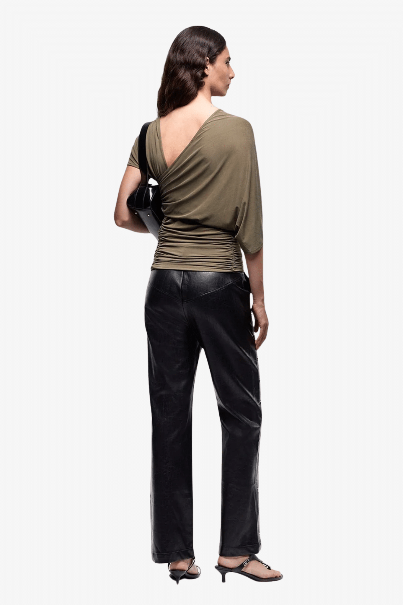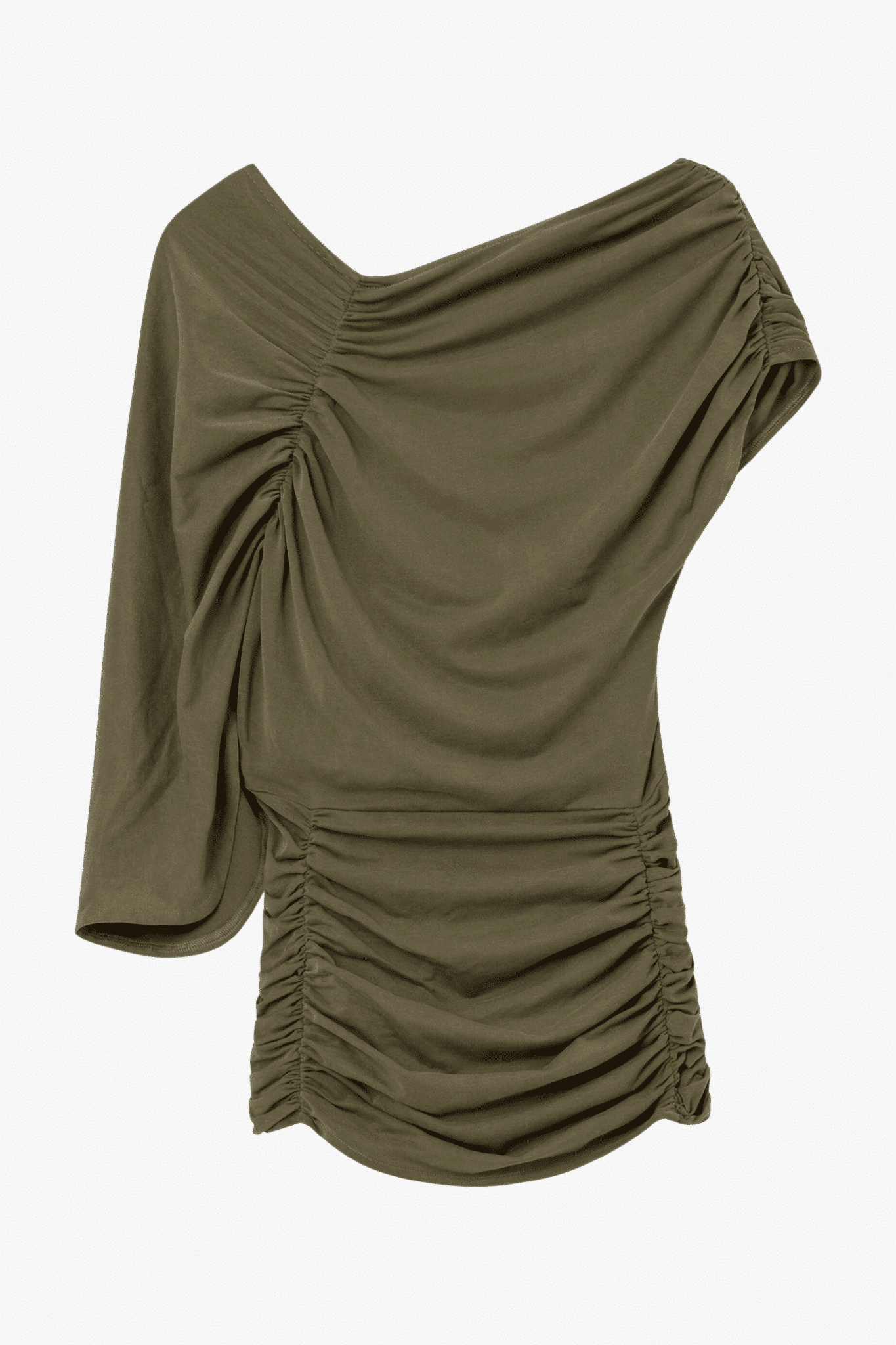 Verkrijgbaar in een verfijnde groene tint, deze top is de perfecte keuze voor degene die hun stijl naar een hoger niveau willen tillen. Ideaal voor zowel casual als chique avonden, deze gedrapeerde top biedt veelzijdigheid en comfort.