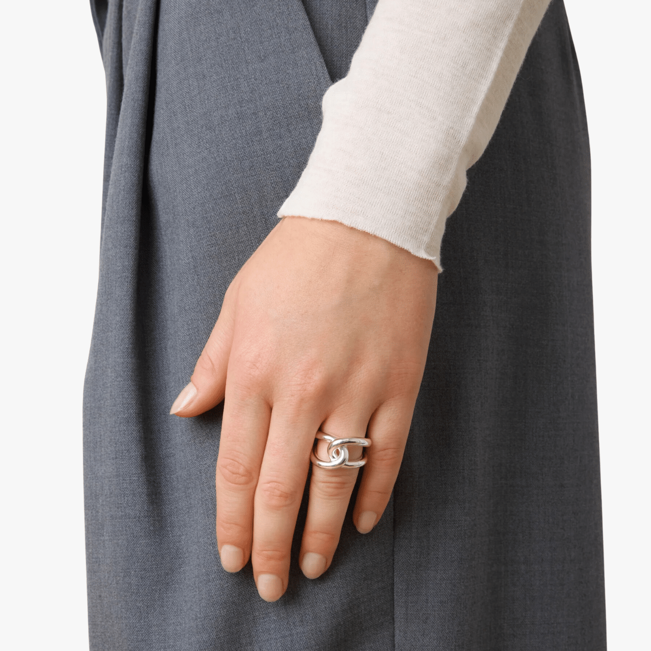 Met zijn unieke knoopdetail is de Agnes-ring een subtiel, maar opvallend sieraad dat elke outfit een verfijnde touch geeft. Of je nu een formele of casual look kiest, deze zilveren ring voegt altijd een vleugje stijl toe.