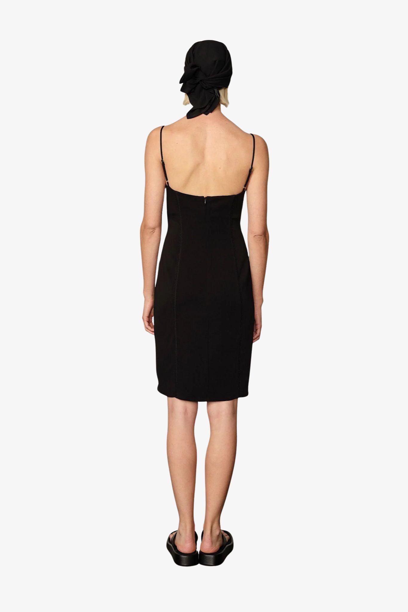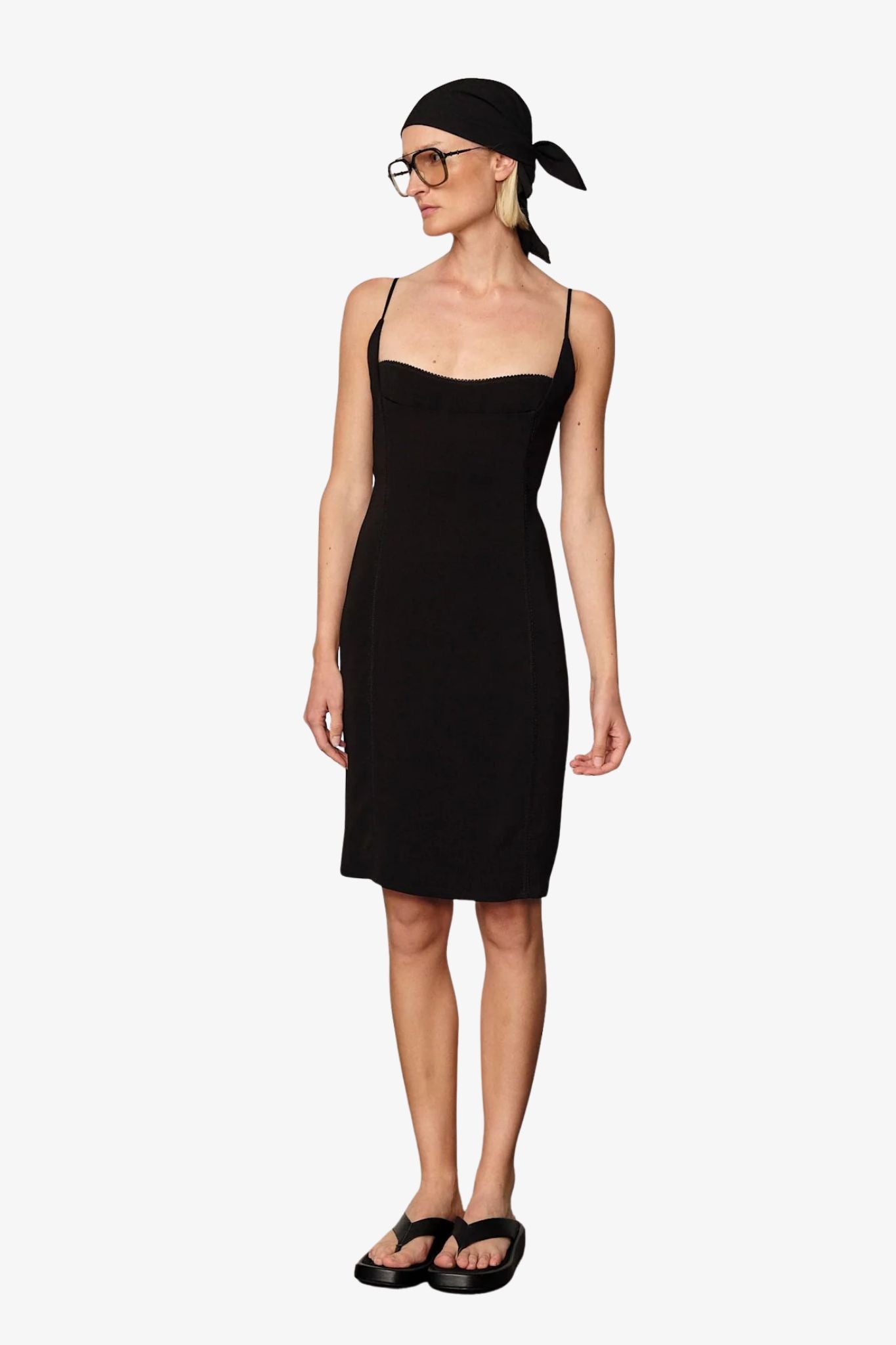 The ultimate little black dress — defined by subtle structure and refined femininity.