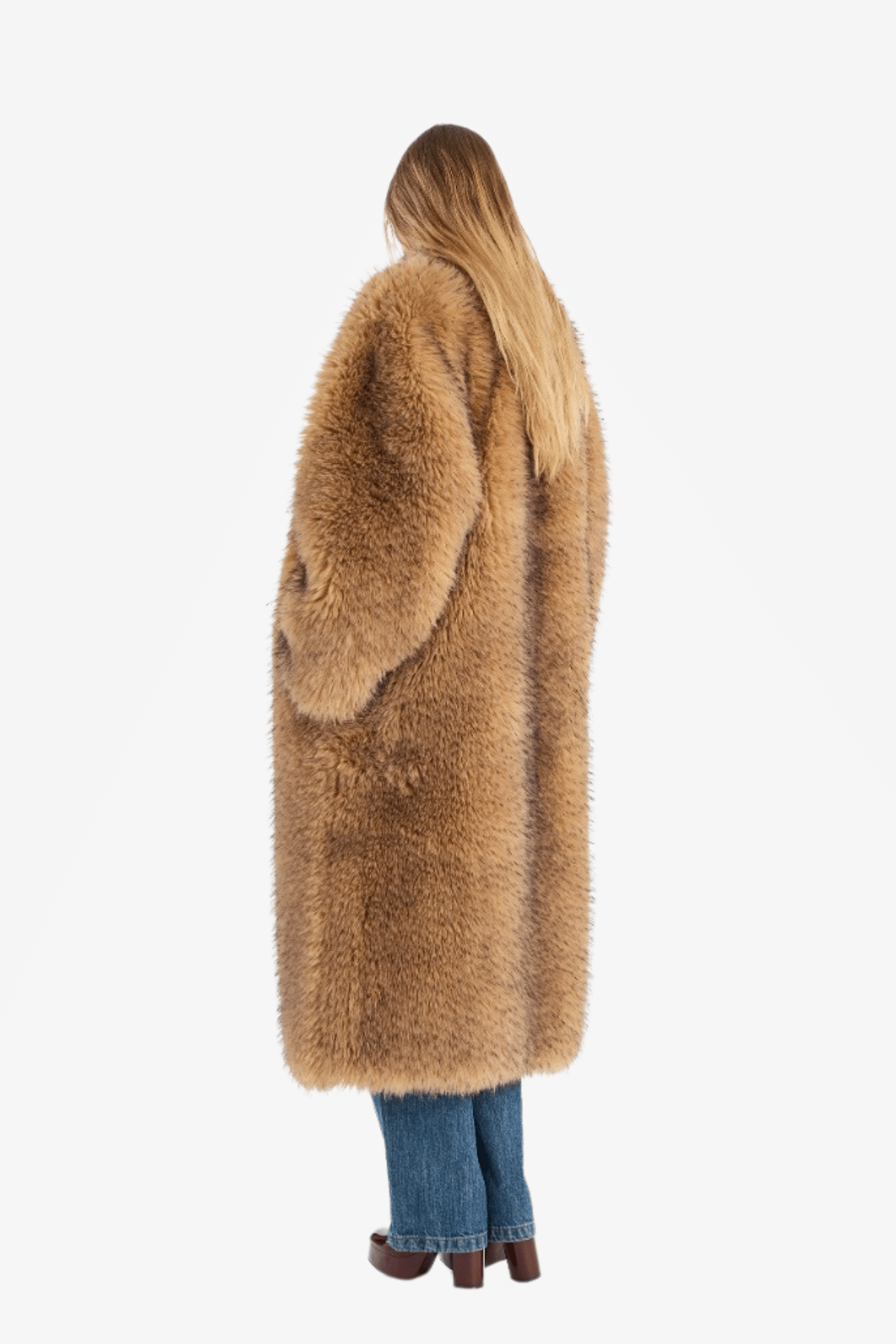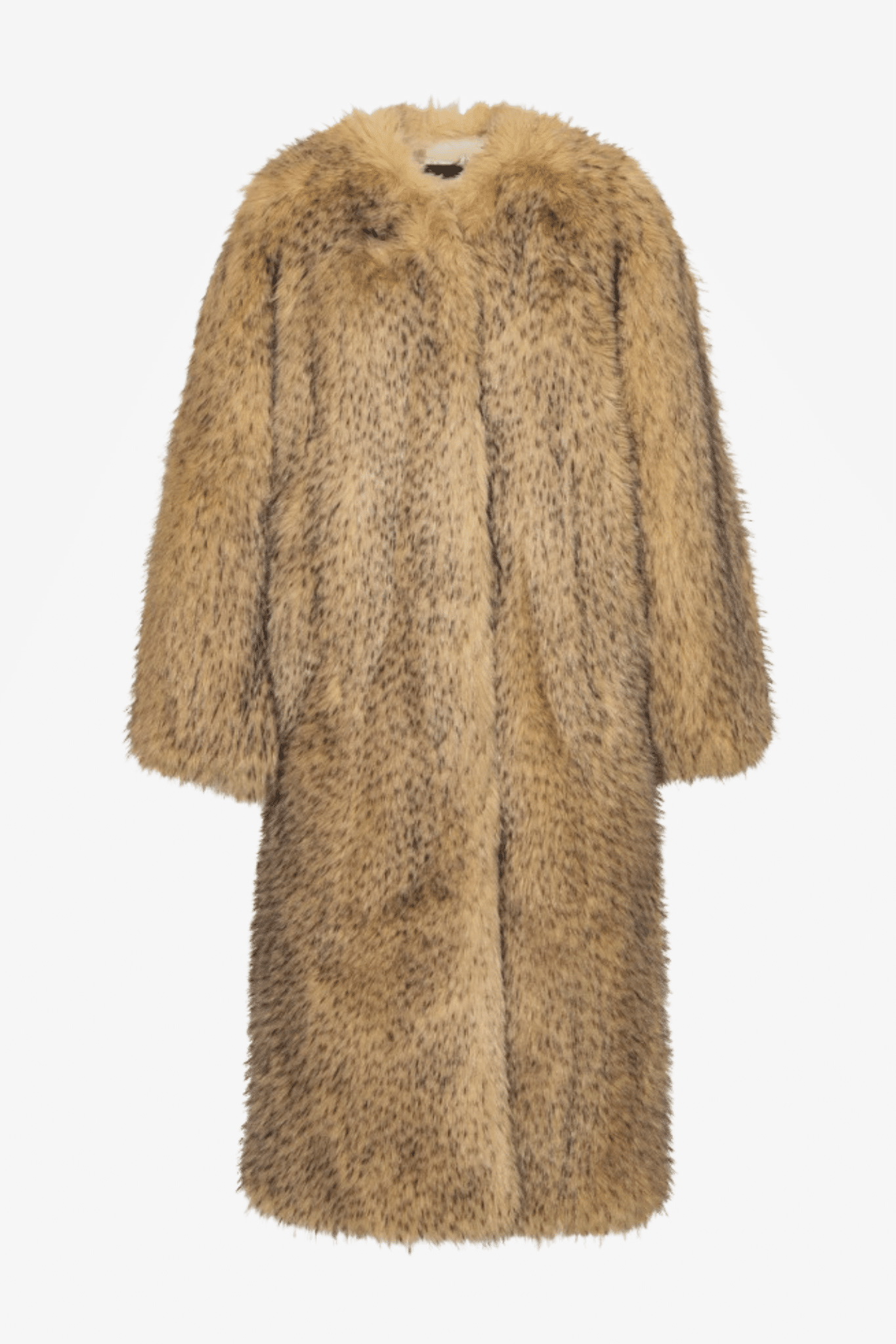 Upgrade je wintergarderobe met de Faux Fur Long Coat Beige van Rotate. Deze stijlvolle damesjas is gemaakt van volumineus pluche imitatiebont, voorzien van een elegant natuurlijk stippenpatroon. Het design combineert een ronde, kraagloze halslijn met wijde lange mouwen en een verfijnde verborgen sluiting. Dankzij de steekzakken in de zijnaden en de volledige voering biedt de jas niet alleen warmte maar ook ultiem draagcomfort.