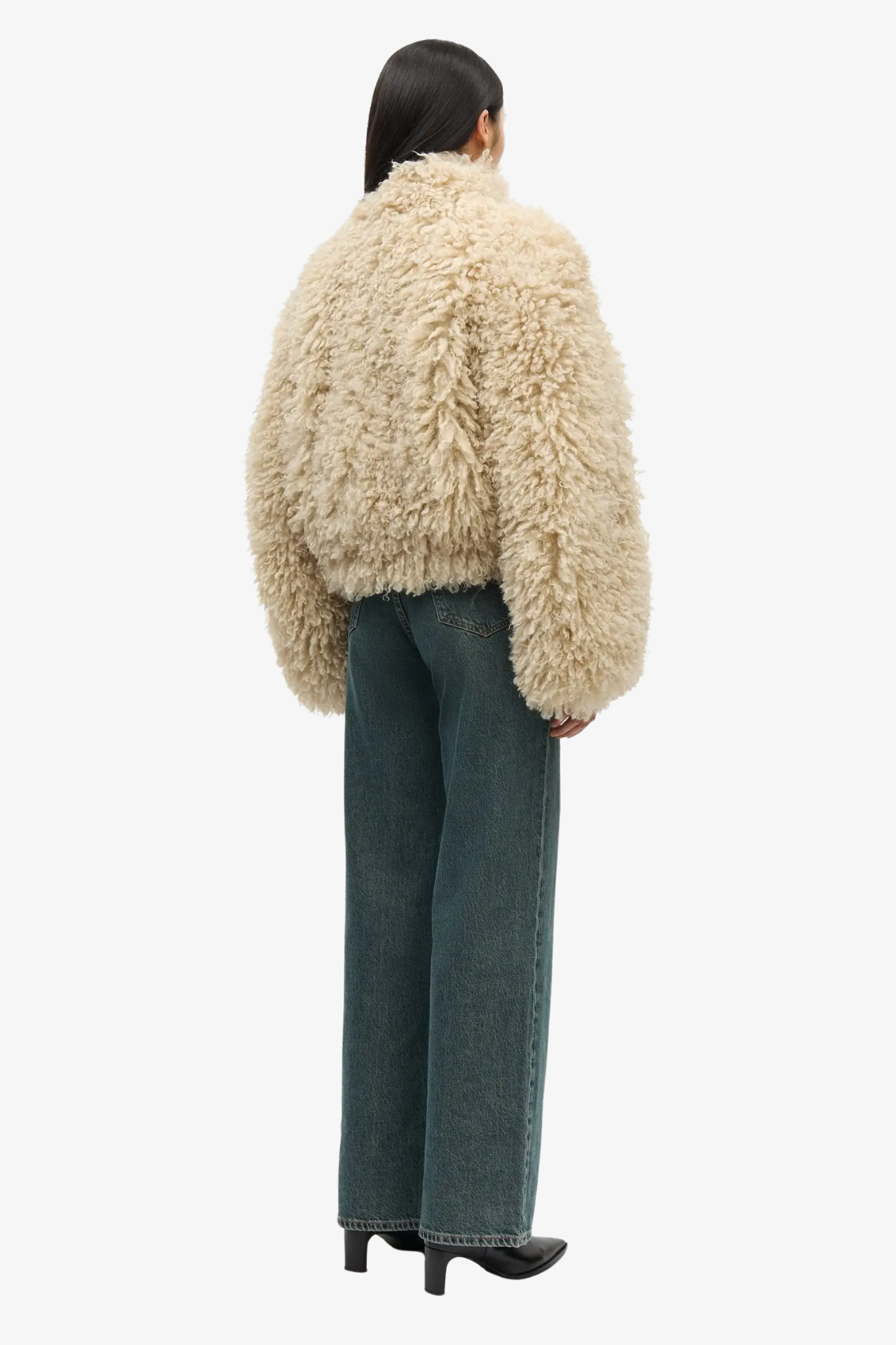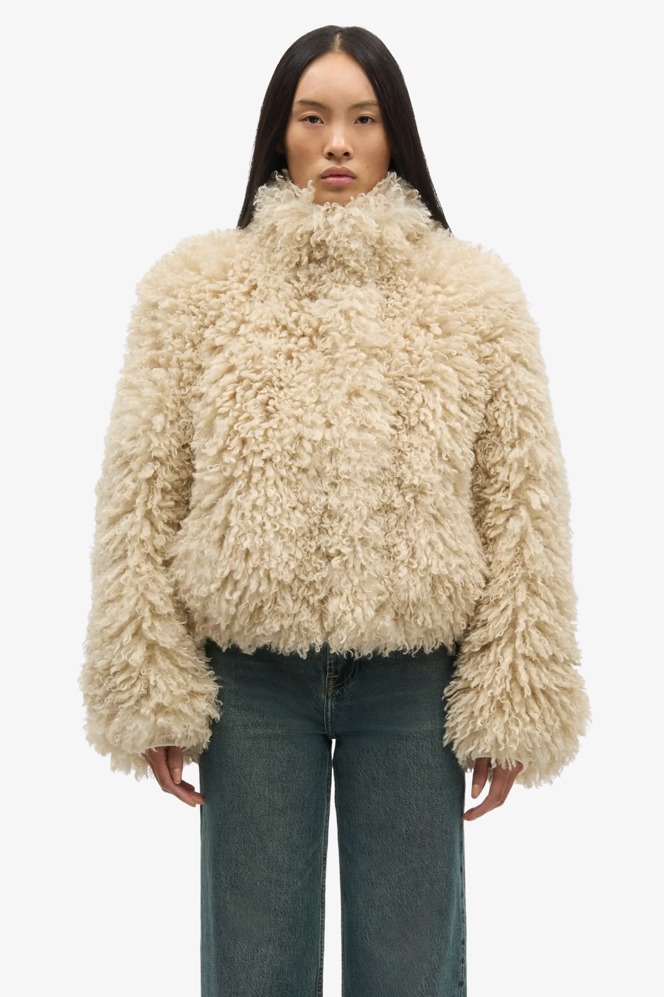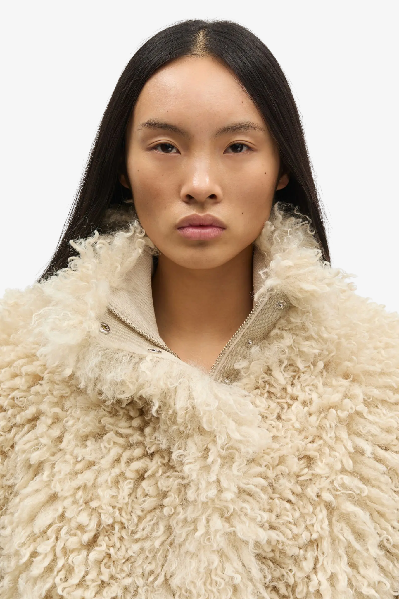 This luxurious faux fur bomber combines contemporary design with sustainable craftsmanship. The generously cut silhouette features a discreet snap and zip front closure, complemented by refined rib-knit cuffs and a fitted elasticated hem. Practical side pockets and subtle padding provide both function and comfort, while the complete lining ensures durability. Crafted from 100% recycled polyester, this piece represents responsible fashion without compromising on style or warmth.