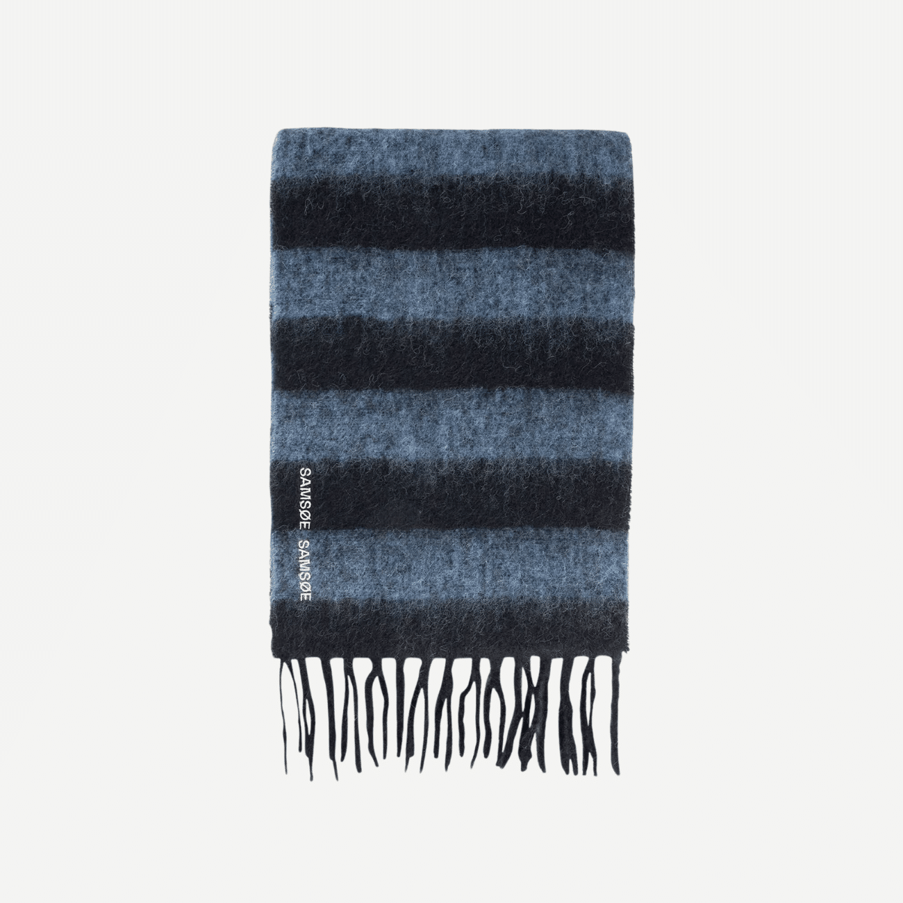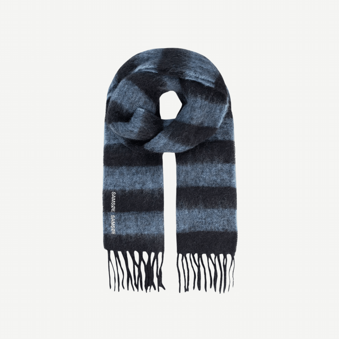 Met zijn indrukwekkende lengte van 210 cm en een breedte van 34 cm, kan deze sjaal op verschillende manieren gestyled worden om jou te beschermen tegen de kou. De subtiele franjes en het geborduurde Samsøe Samsøe-logo geven deze sjaal een elegante afwerking, perfect voor een casual of zakelijke look.