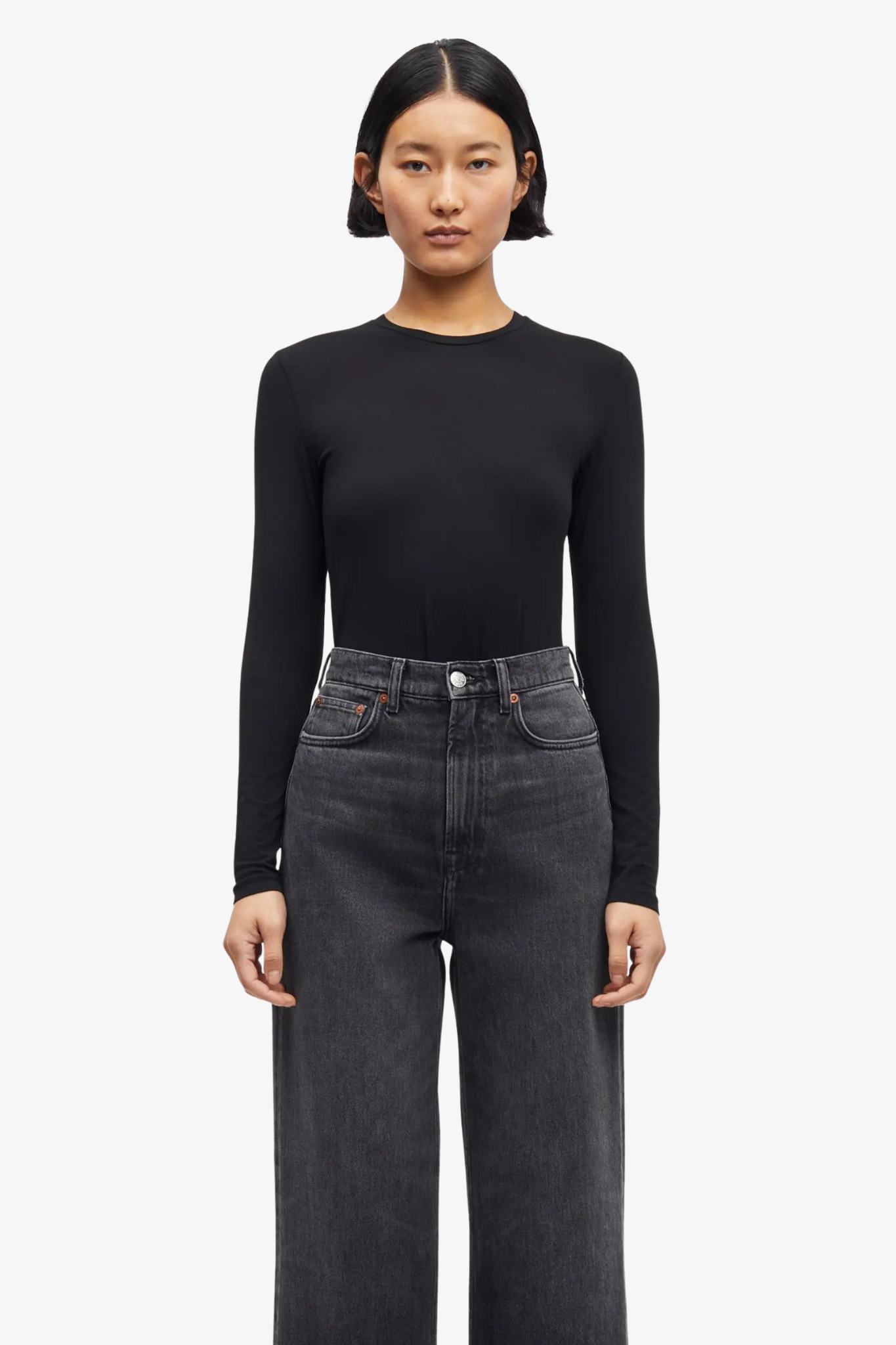 Ervaar de ultieme veelzijdigheid met het T-shirt met col van Samsoe Samsoe. Dit nauwsluitende dames T-shirt is ontworpen voor optimaal comfort en stijl, ideaal als basislaag of op zichzelf. Gemaakt van een premium mix van katoen en modal, biedt de zachte jerseystof een lichte extra stretch die zorgt voor een flatterend slank silhouet. Verkrijgbaar in tijdloos zwart, vormt dit shirt de perfecte aanvulling op elke garderobe.