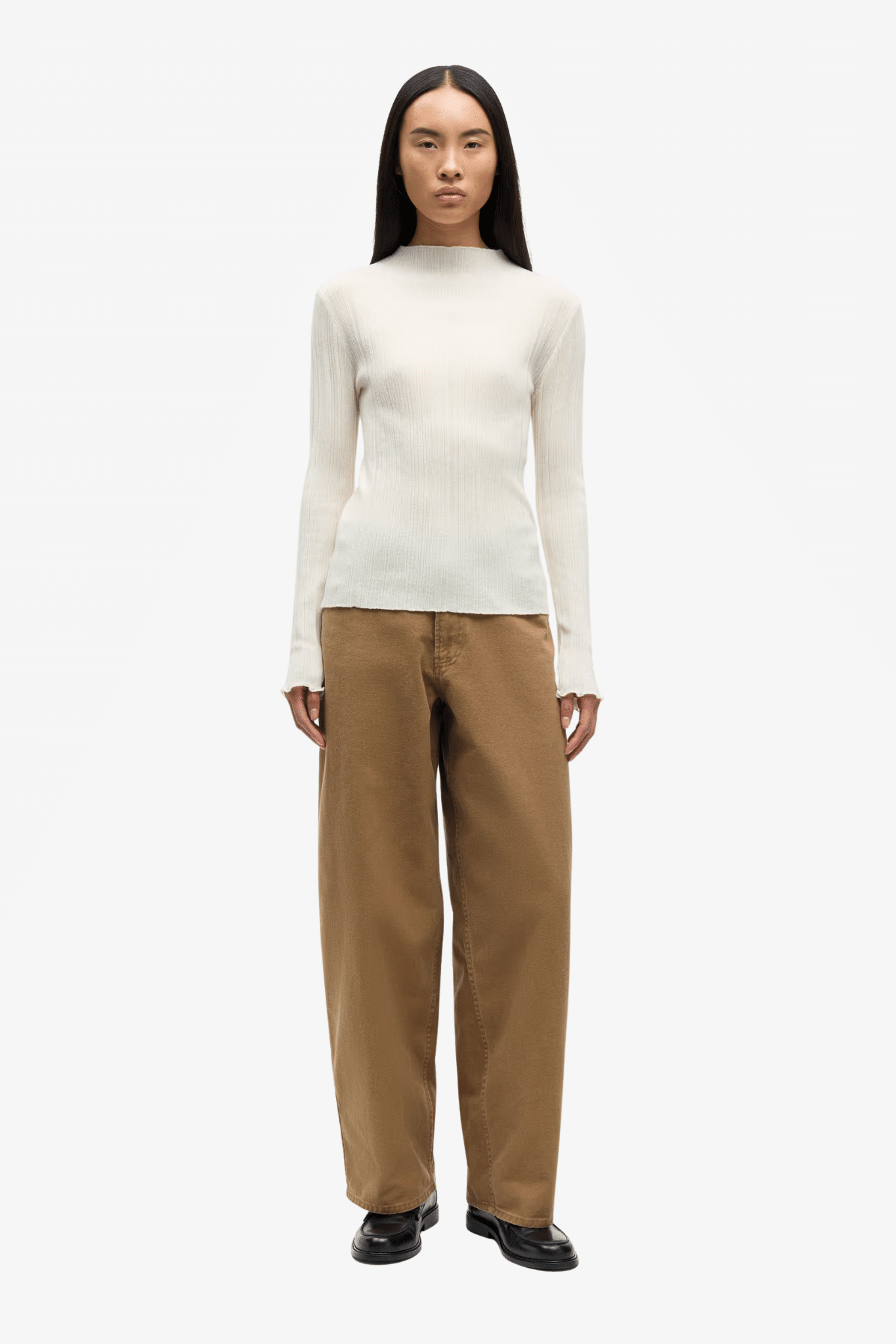 De Samsoe Samsoe broek biedt een ontspannen stijl met zijn losse pasvorm en middelhoge taille. Wat deze broek vooral bijzonder maakt, is de gebogen pijp die voor een unieke look zorgt. Deze broek is uitgevoerd in een warme bruine kleur en is gemaakt van 100% biologisch katoen, wat bijdraagt aan een bewuste keuze voor het milieu. De broek heeft een knoop- en ritssluiting aan de voorkant en een klassiek vijf-pocketmodel voor praktisch gebruik. Met riemlussen en een bijpassende dunne riem kun je de look compleet maken. Bij karakterisering: - Losse pasvorm - Middelhoge taille - Vijf-pocketmodel - 100% biologisch katoen Voor vragen over maten of het model kun je ons bereiken via de website chat of Instagram DM. We staan klaar om je te helpen, zodat je aankoop zo goed mogelijk bevalt.