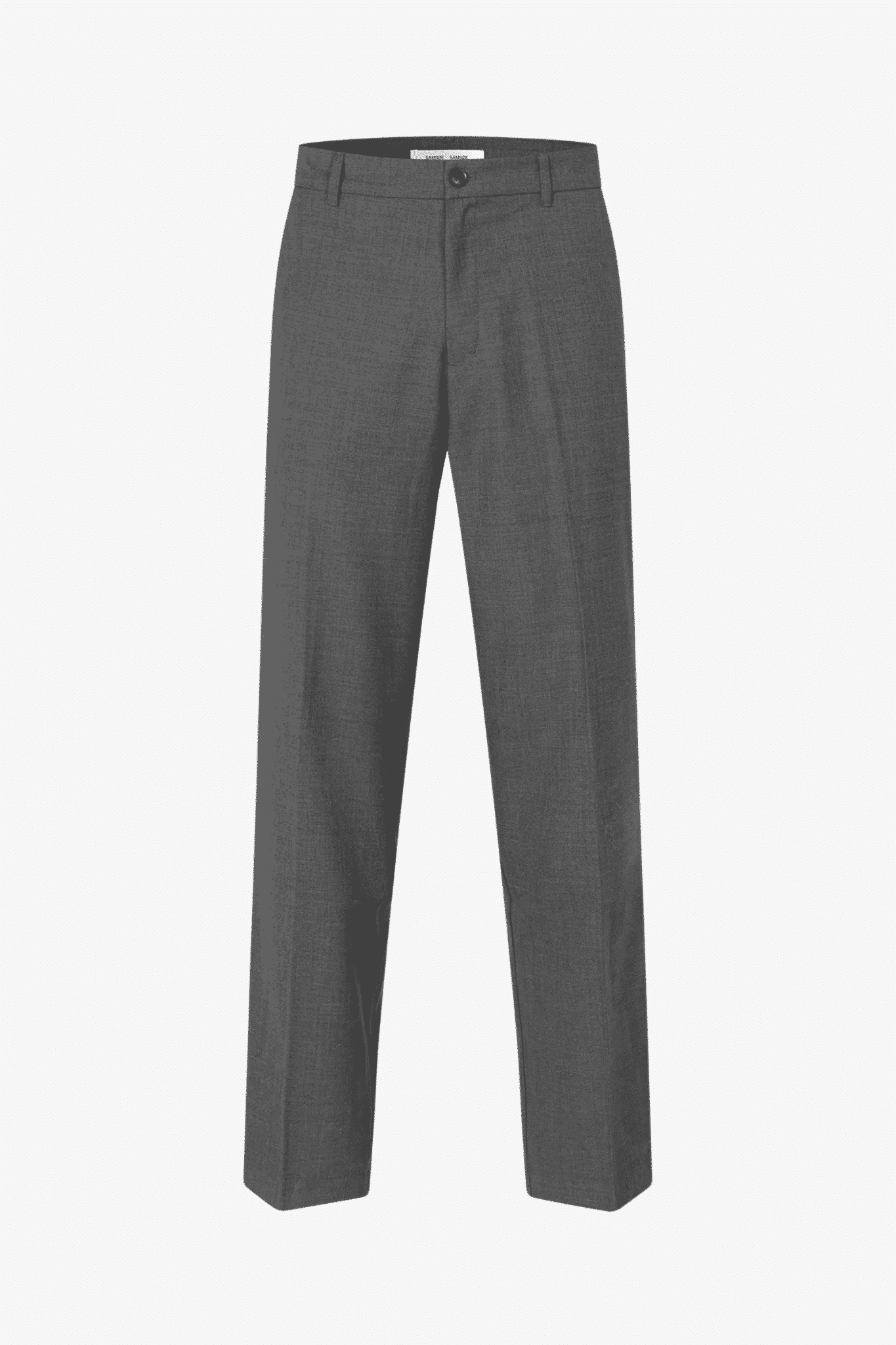 De Samsoe Samsoe broek is een stijlvolle en veelzijdige keuze voor heren. Deze grijze broek heeft een normale pasvorm met wijde pijpen, wat zorgt voor een comfortabele en moderne look. De broek is voorzien van een knoop- en ritssluiting bij de vlieg, zijzakken aan de voorkant en paszakken met knoopsluiting aan de achterkant, waardoor hij zowel praktisch als functioneel is.