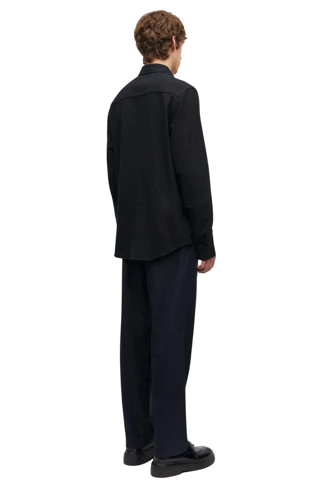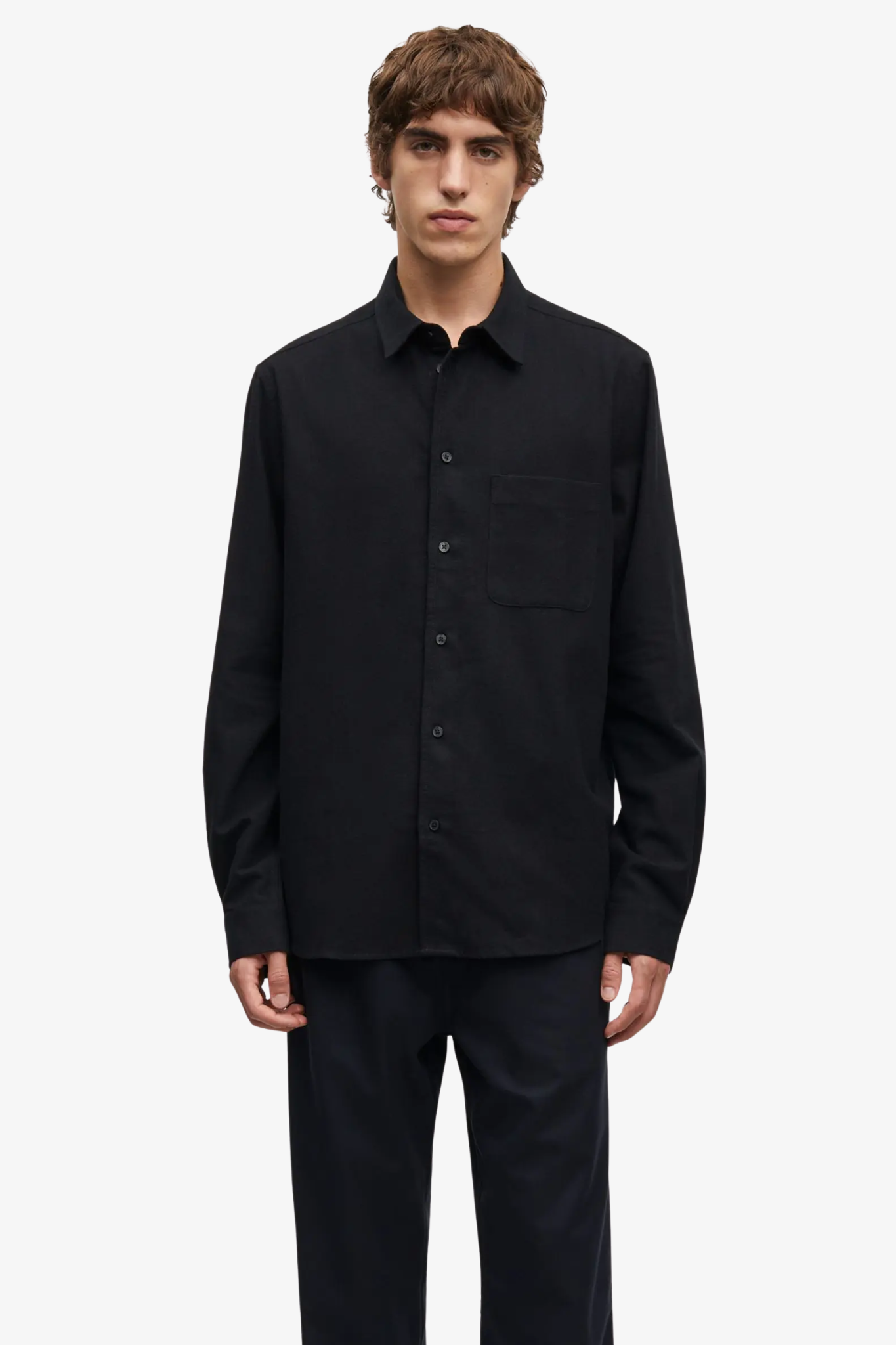 Dit zwarte overhemd is vervaardigd uit 100% biologisch katoen, waardoor het zowel milieuvriendelijk als ademend is. De naad van het nekjuk voegt extra stevigheid toe en zorgt voor een perfecte pasvorm die de hele dag meegaat.