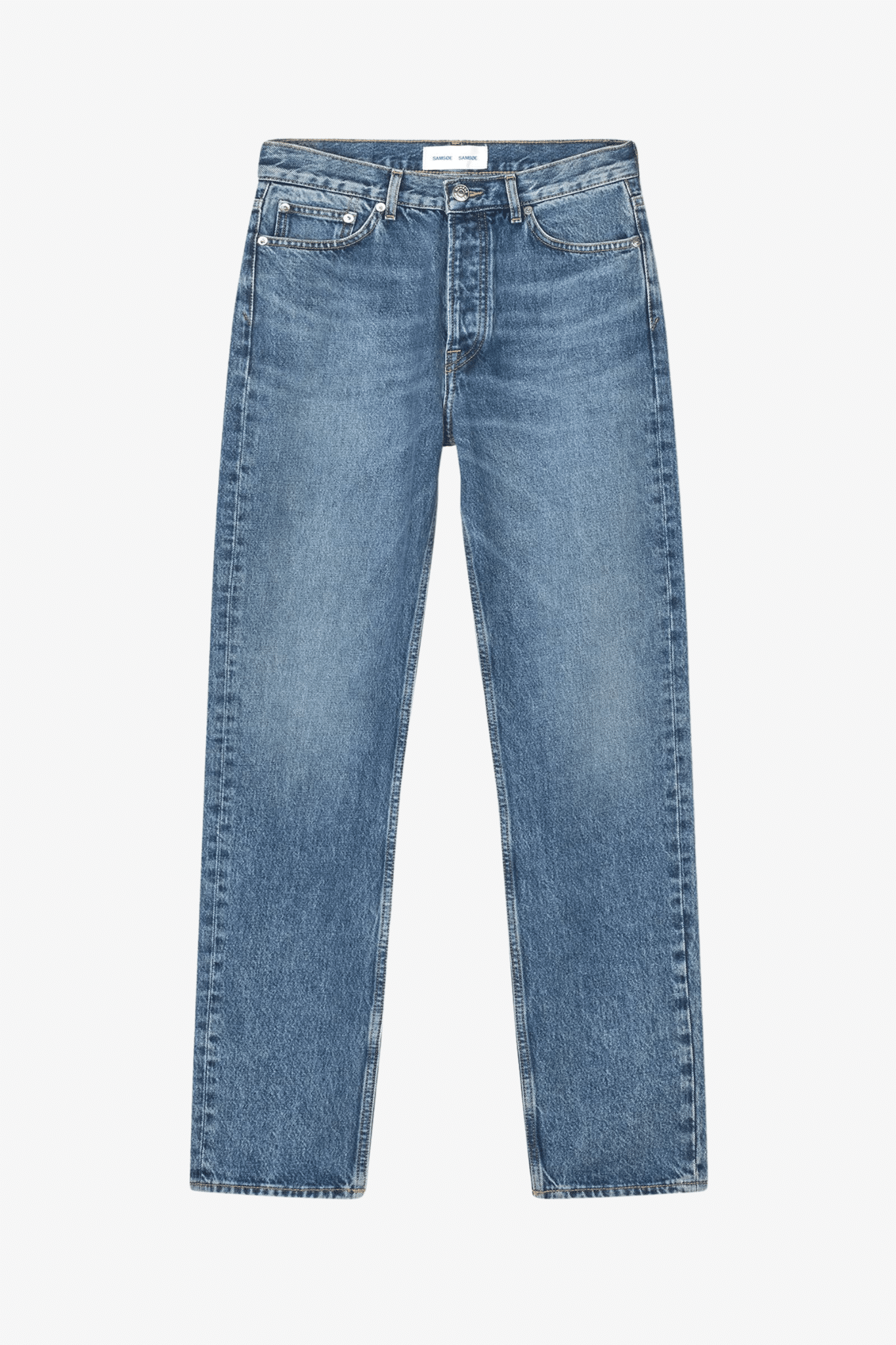 Ontdek de perfecte balans tussen stijl en comfort met deze rechte jeans voor dames van Samsoe Samsoe. Deze jeans heeft een middelhoge taille, een normale pasvorm en rechte pijpen, wat zorgt voor een tijdloze look die gemakkelijk te combineren is met al je favoriete outfits. De klassieke vijf-pocketmodel biedt voldoende opbergruimte, terwijl de knoop- en ritssluiting zorgen voor een optimale pasvorm.