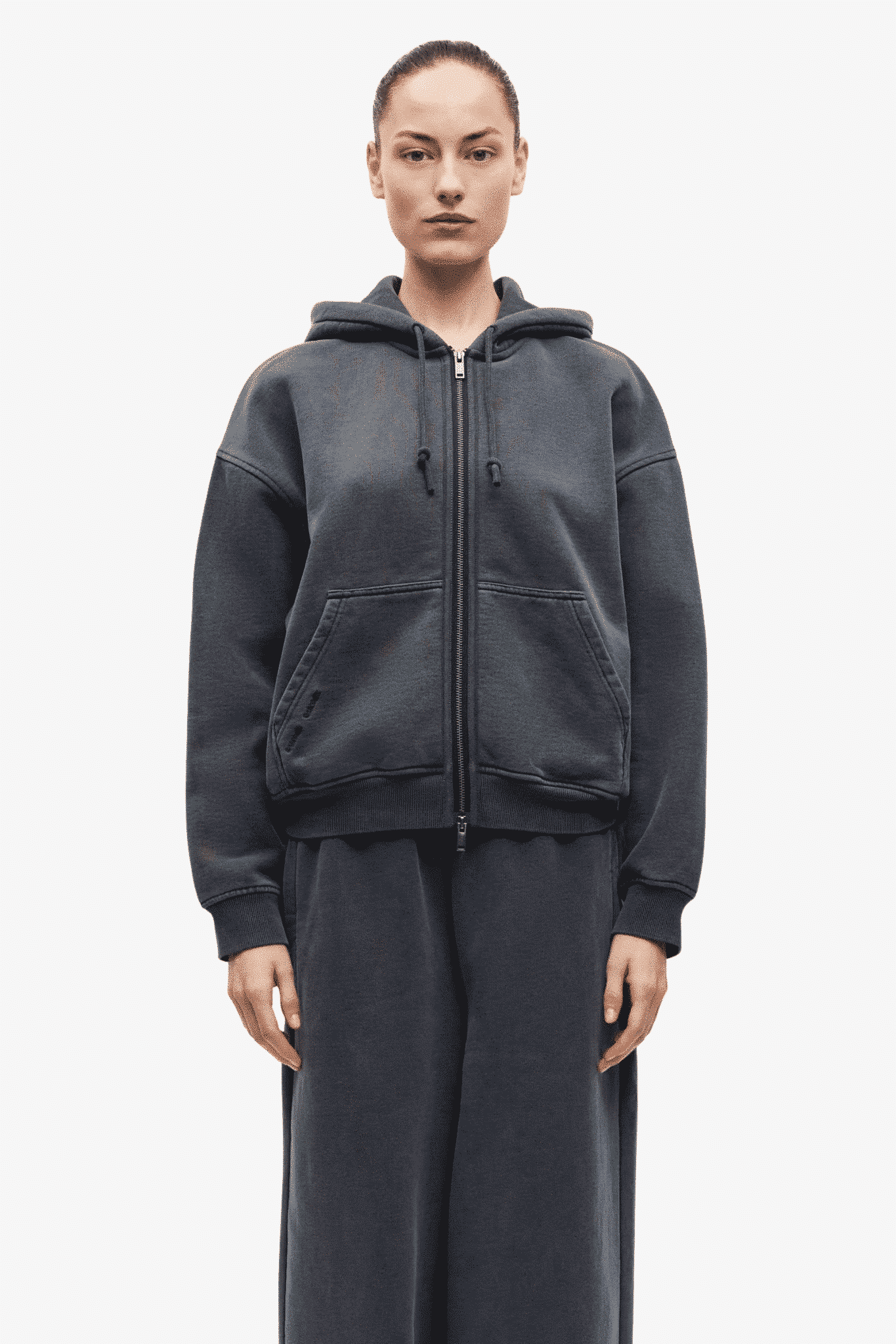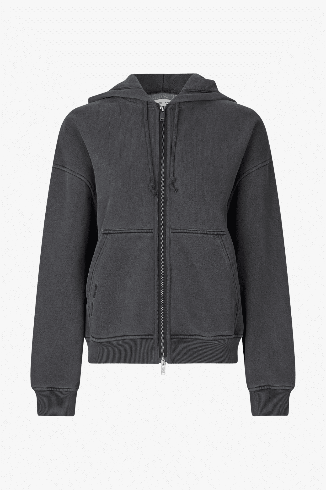 Ontdek de ultieme combinatie van stijl en comfort met onze jersey hoodie voor dames. Deze hoodie heeft een losse pasvorm en verlaagde schouders, perfect voor een ontspannen, casual look. De voorkant is voorzien van een handige ritssluiting en de capuchon heeft een trekkoord voor extra aanpasbaarheid. Ribgebreide manchetten en zoom zorgen voor een nette afwerking, terwijl de kangoeroezakken aan de voorkant niet alleen praktisch zijn, maar ook stijlvol dankzij het geborduurde Samsøe Samsøe-merk.