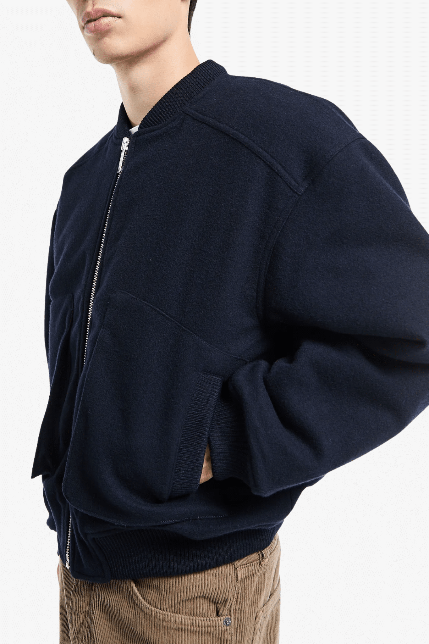 Ontdek het stijlvolle en veelzijdige donkerblauwe bomberjack voor heren van Sunflower. Dit chique jasje is vervaardigd van hoogwaardig wol en biedt een uitstekende balans tussen comfort en modieuze uitstraling. Het bombermodel is voorzien van een geribbelde kraag, manchetten en zoom die zorgen voor een stevige pasvorm. Met de praktische ritssluiting aan de voorkant en een handige opgestikte binnenzak is dit jasje zowel functioneel als trendy. Ideaal voor dagelijks gebruik of een avondje uit.