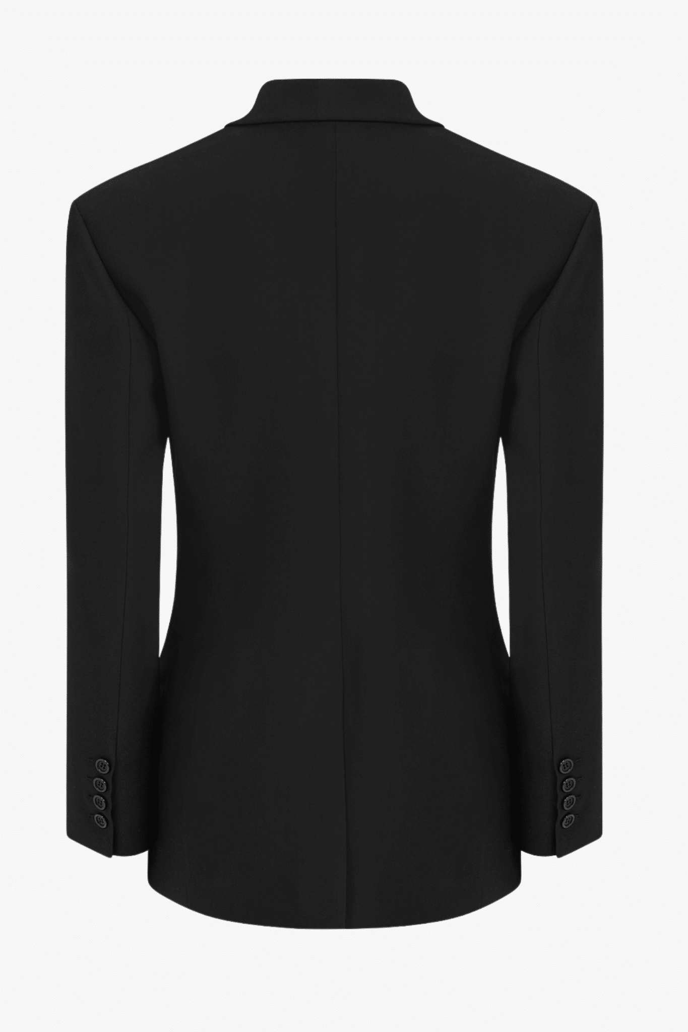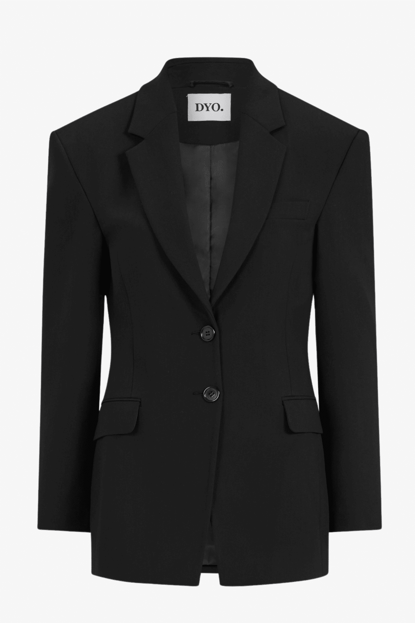 The Dyo Studio blazer is a distinctive, custom-tailored piece in classic black. This single-breasted jacket features two buttons and a fitted waist, giving it an elegant and timeless silhouette. Crafted from a polyester and viscose blend, it offers comfort alongside an excellent fit. Its black color makes it versatile for both formal and casual settings. Perfect for those who appreciate a sleek, traditional style. - Brand: Dyo Studio - Color: Black - Category: Women's jackets and blazers - Features: Single-breasted, two buttons, tailored fit, polyester/viscose blend For further details or inquiries, please contact our customer service.