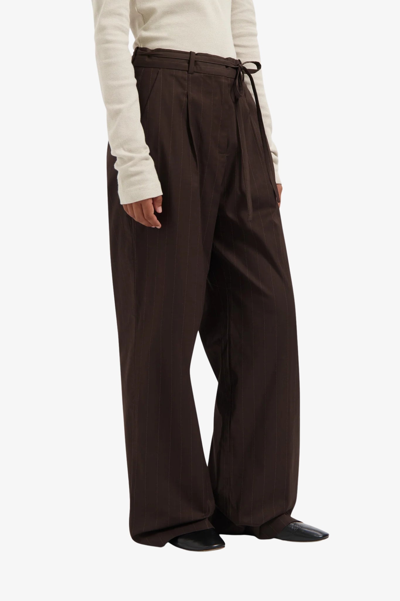 Crafted with precision, the Pinstripe Tailored Trousers offer a sleek, refined silhouette enhanced by subtle pinstripe detailing. Designed for a perfect fit, these trousers blend classic tailoring with contemporary elegance, making them an essential piece for a polished and confident look in professional and formal settings.